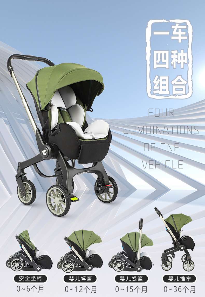 four-in-one baby stroller two-way newborn baby safety seat basket-type car seat baby three-in-one stroller 中文版