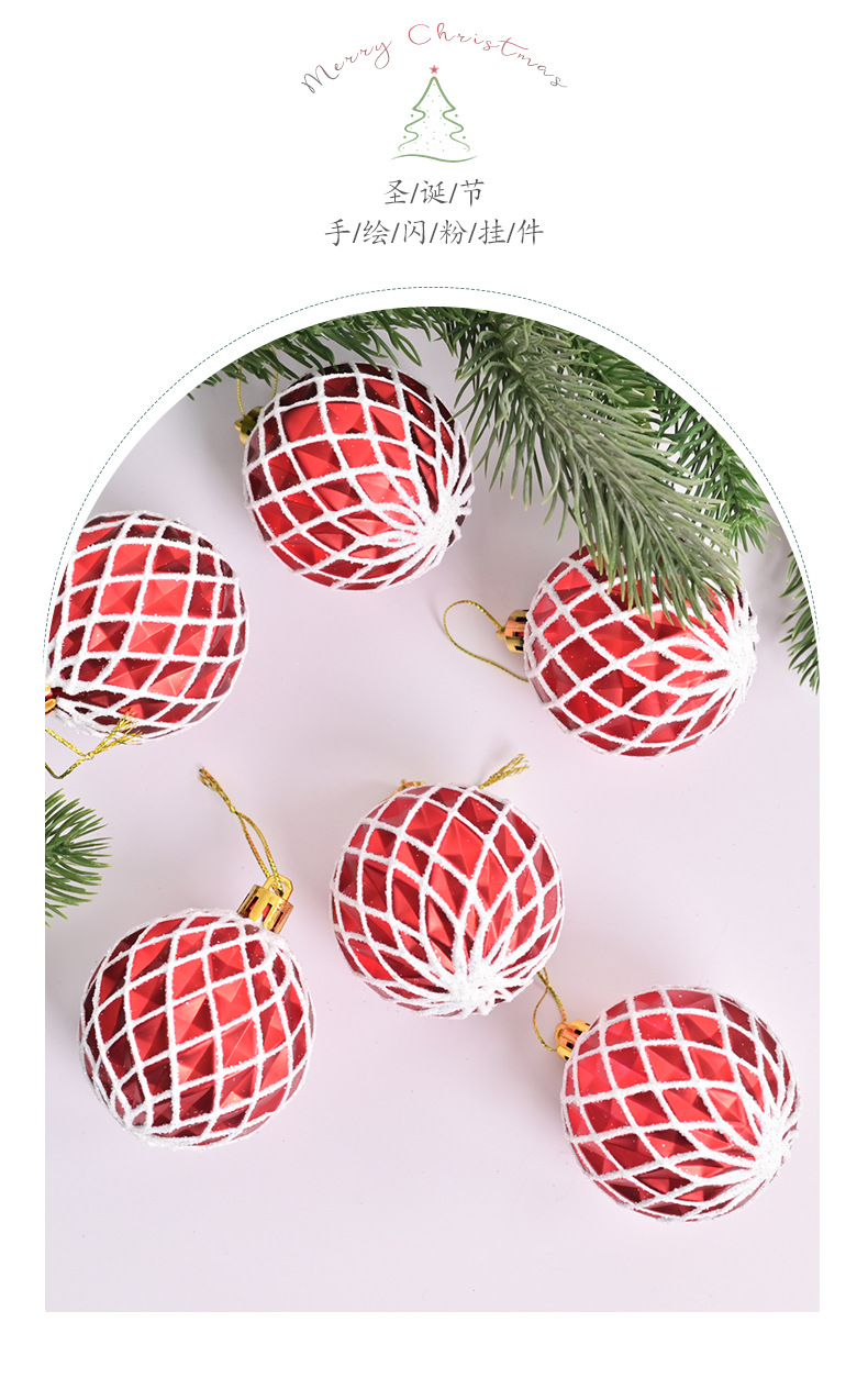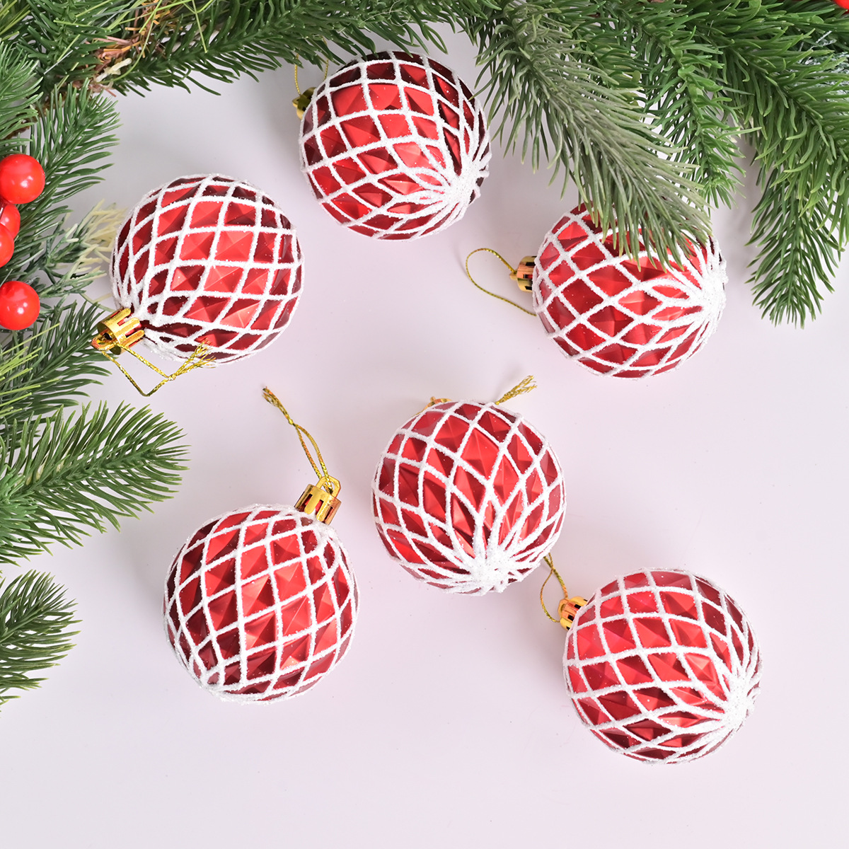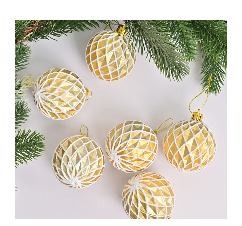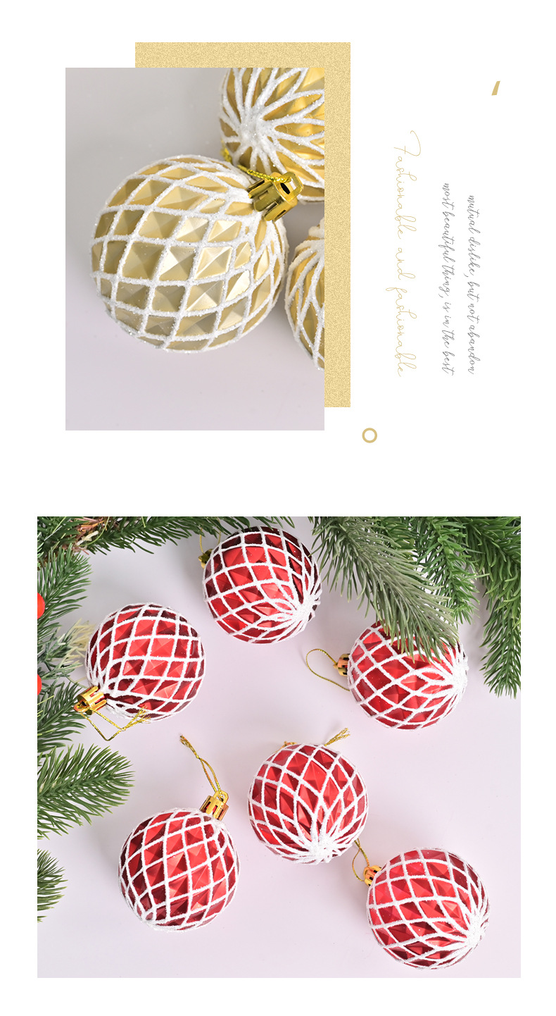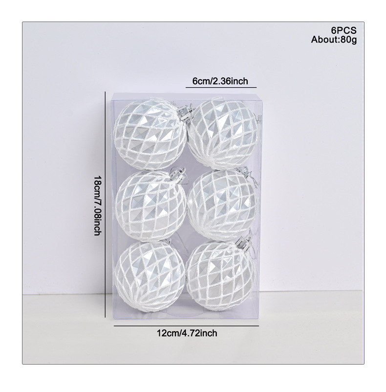 cross-border hot selling christmas ball 6cm electroplating painted concave diamond pattern christmas tree site layout decoration pendant 中文版