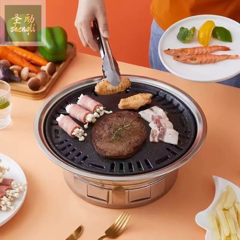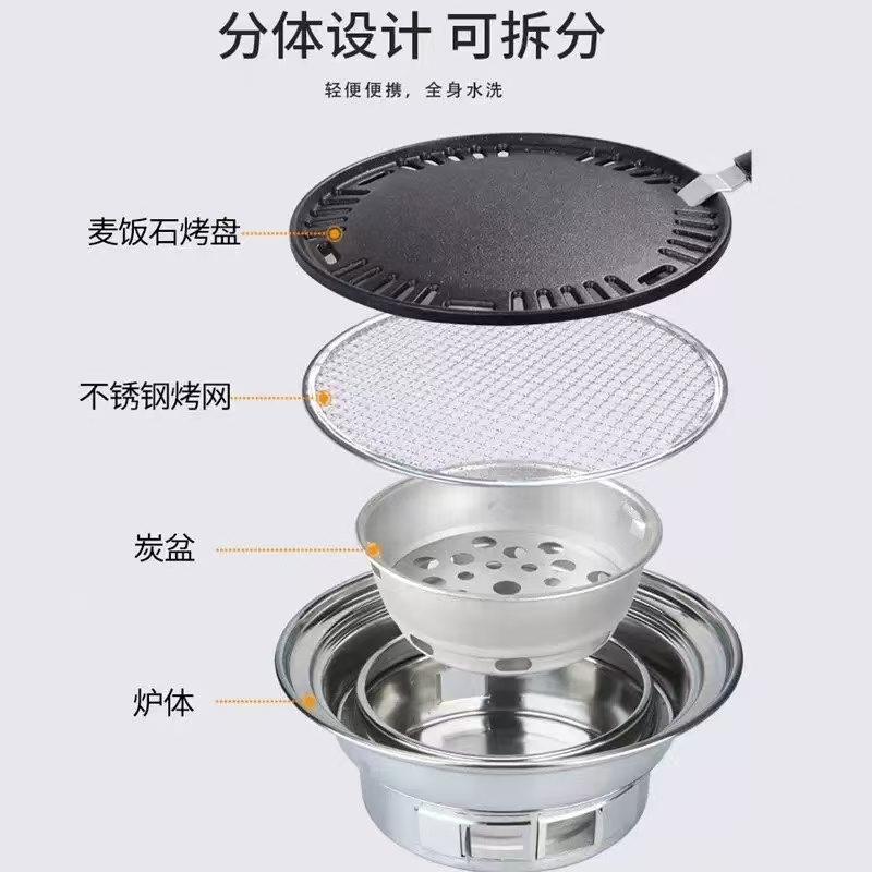 korean-style smokeless charcoal barbecue grill commercial round stainless steel barbecue home indoor small outdoor 中文版