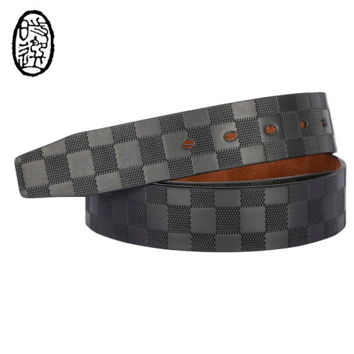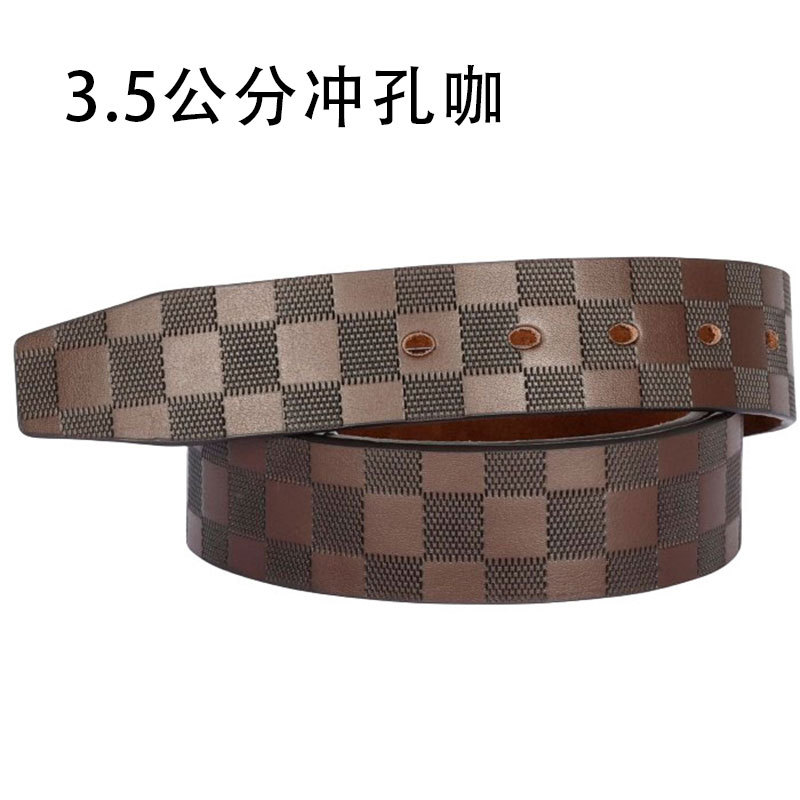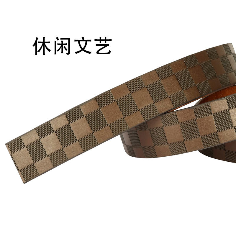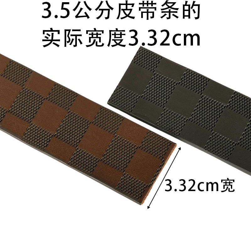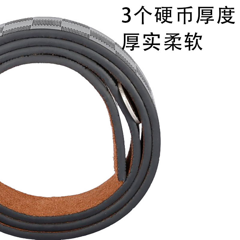 High-quality second-layer cowhide leather and classic check pattern, soft to the touch, with leather logo and length markings on the belt back.