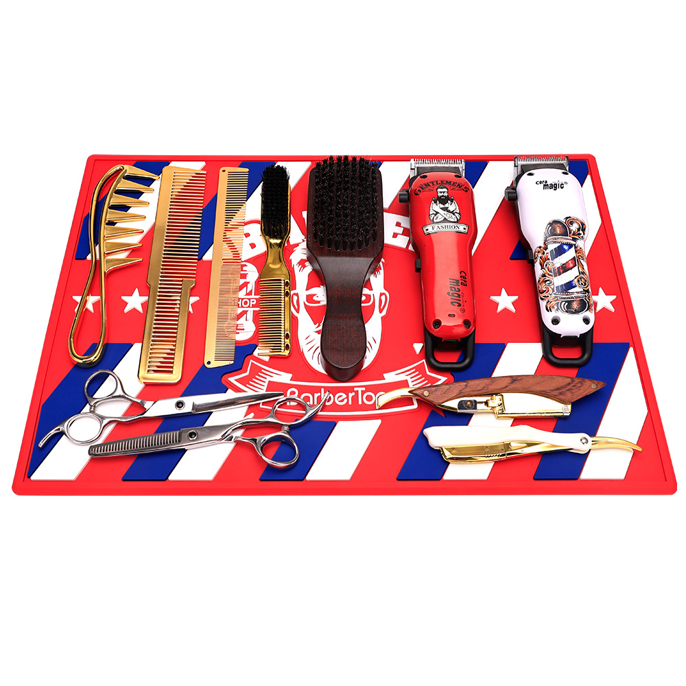 hairdressing oil head trim non-slip mat hair tools placement mat silica gel pad hairdressing scissors comb desktop tool pad 中文版