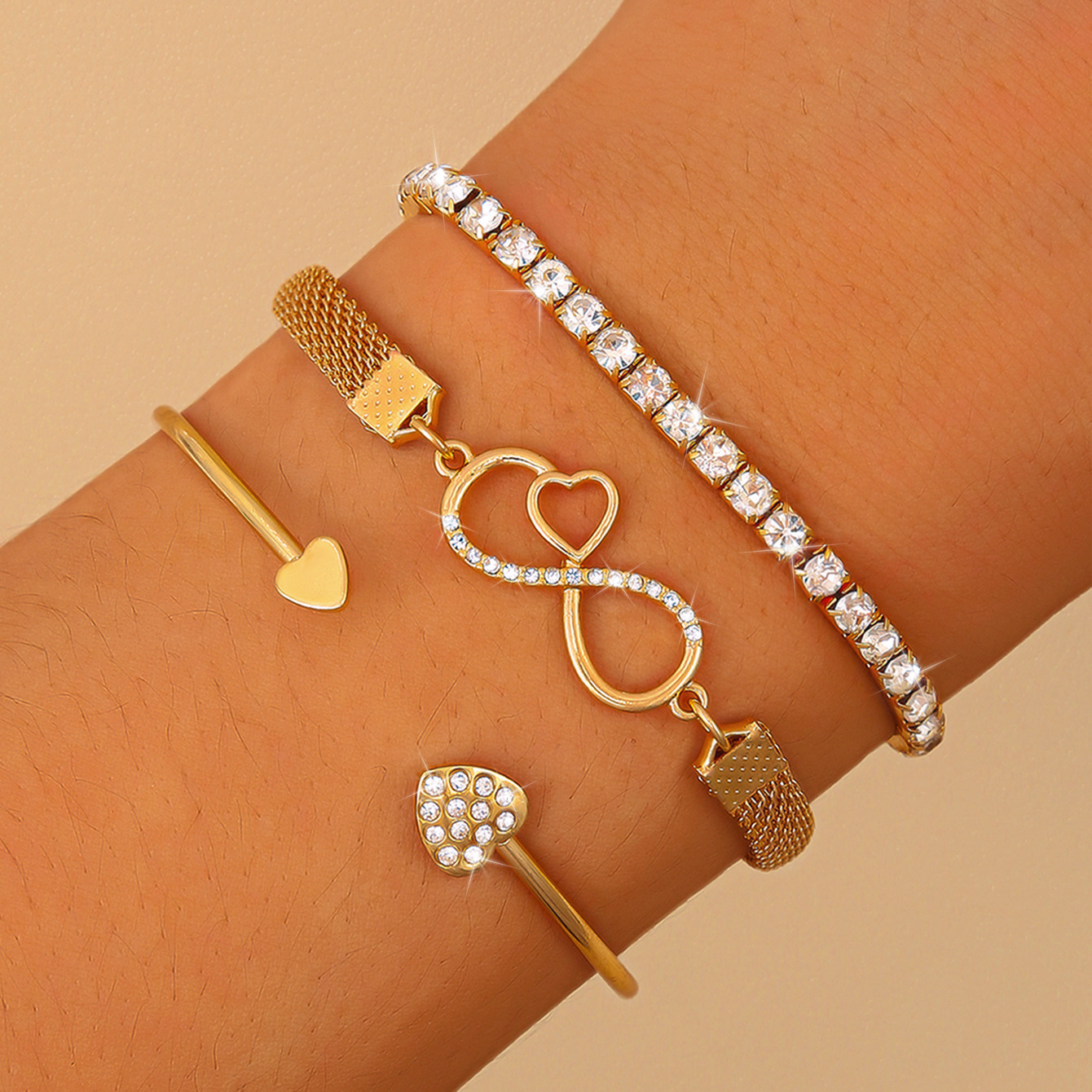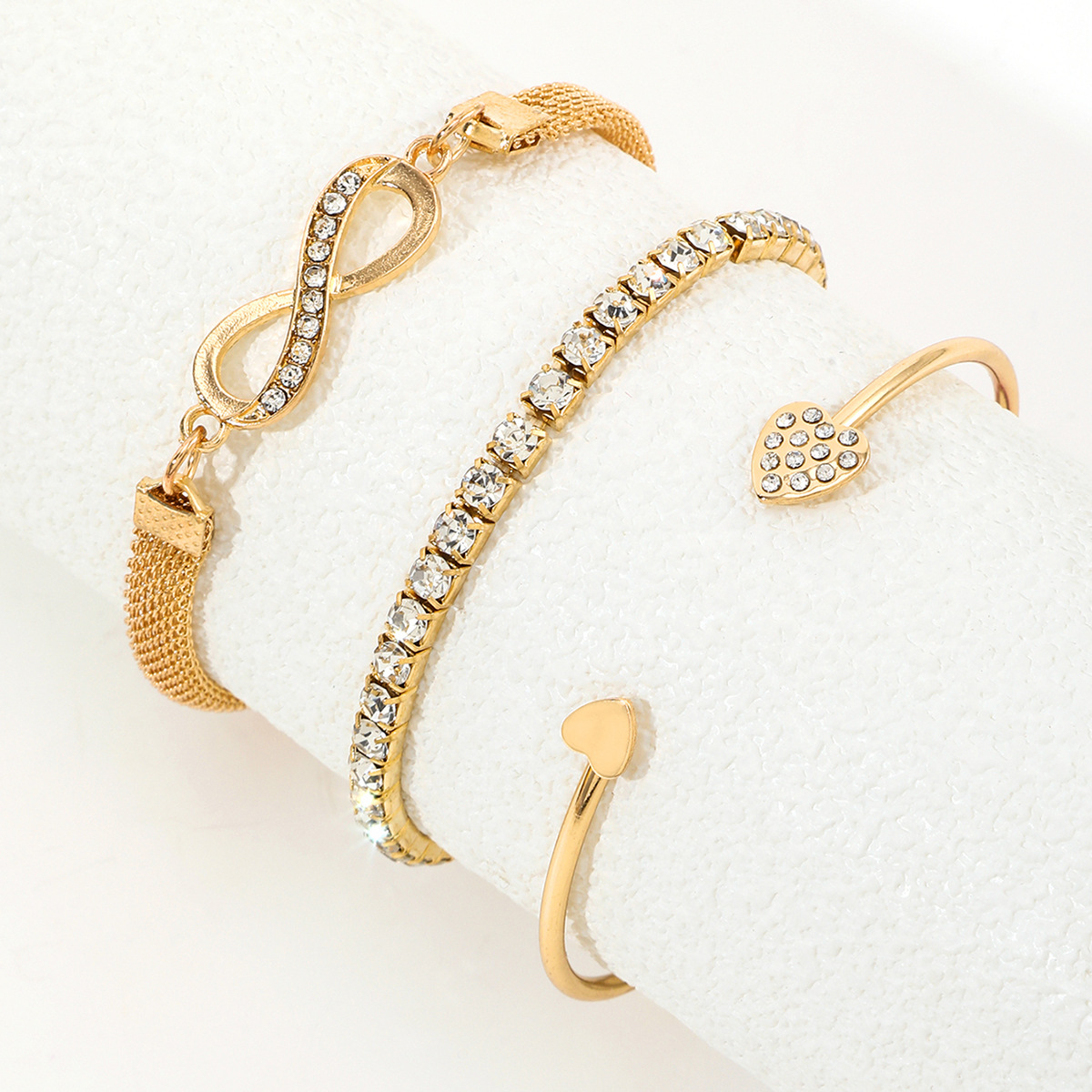 3 pieces unlimited heart bracelet-gold