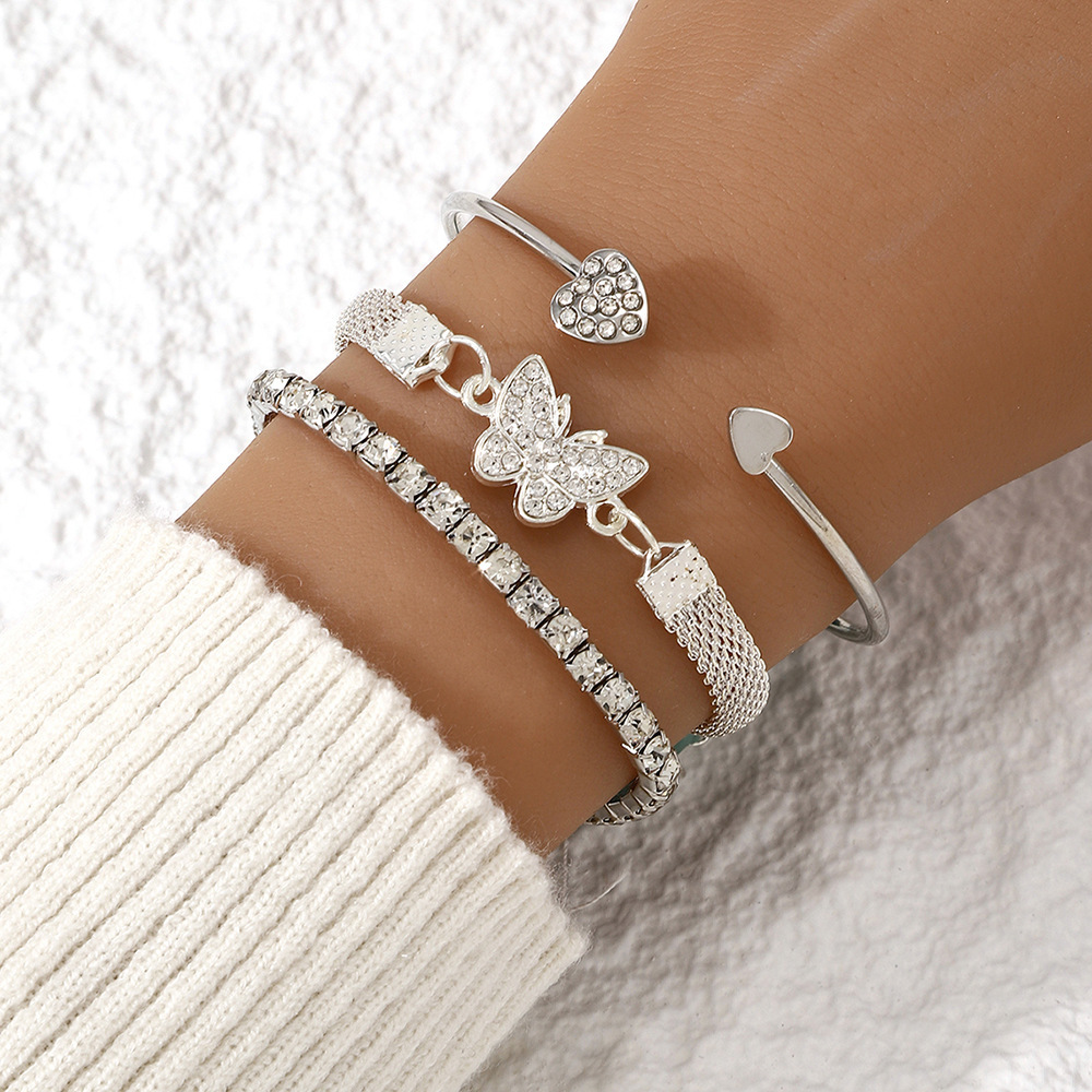 3 pcs butterfly bracelet suit-silver