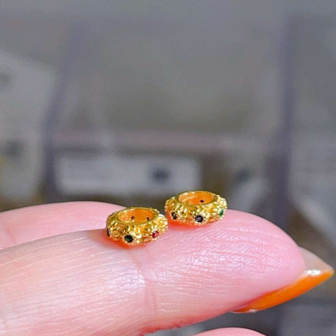 Delicate textures, like the intricate veins of ancient years. Colorful gems are set within, resembling twinkling stars in the night sky. Although small, they are not lacking in grandeur, with every detail telling a story of craftsmanship, quietly emitting a mesmerizing golden glow that belongs exclusively to itself. It only takes one glance to be captivated.