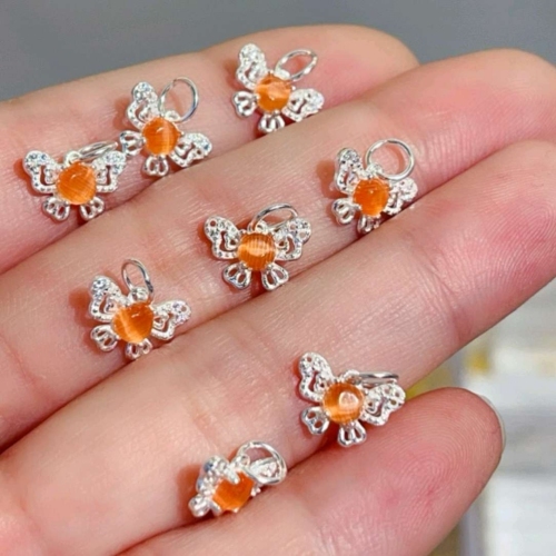 Silver wings are crafted, set with tiny diamonds, gleaming like the dew of dawn. The butterfly body is made of orange cat's eye stones, emitting a mysterious halo, as if it hides a dream garden. They are small and agile, as if they will flutter their wings the next second, adding a touch of mobility and charm to the wearer.