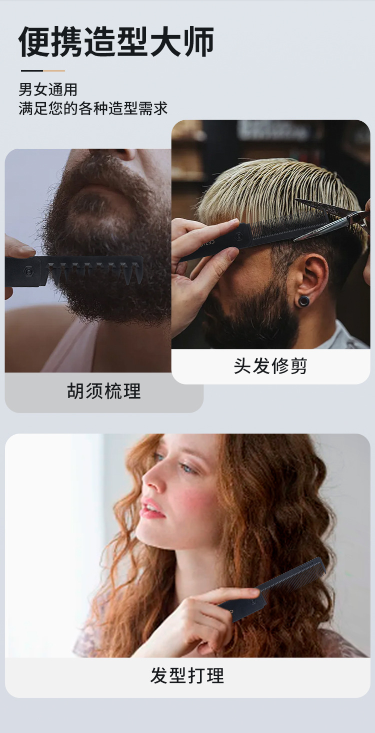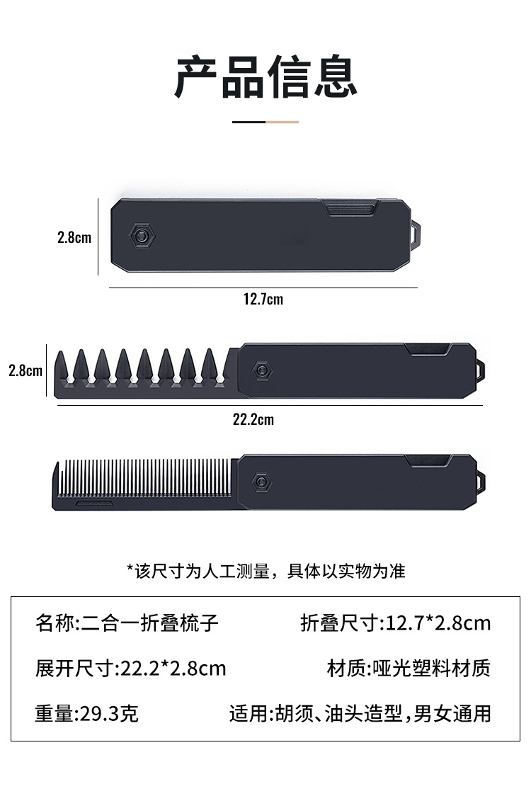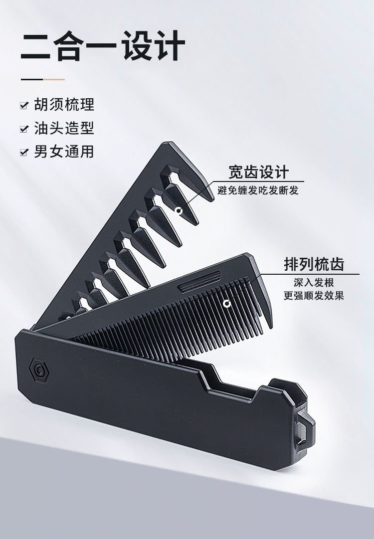 folding 2-in-1 hairdressing comb portable travel men's comb for greasy hair beard comb 中文版