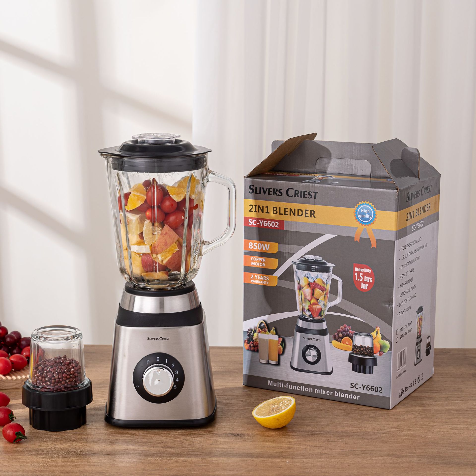 Product capacity: 1.5L mixing cup + 0.5 grinding cup