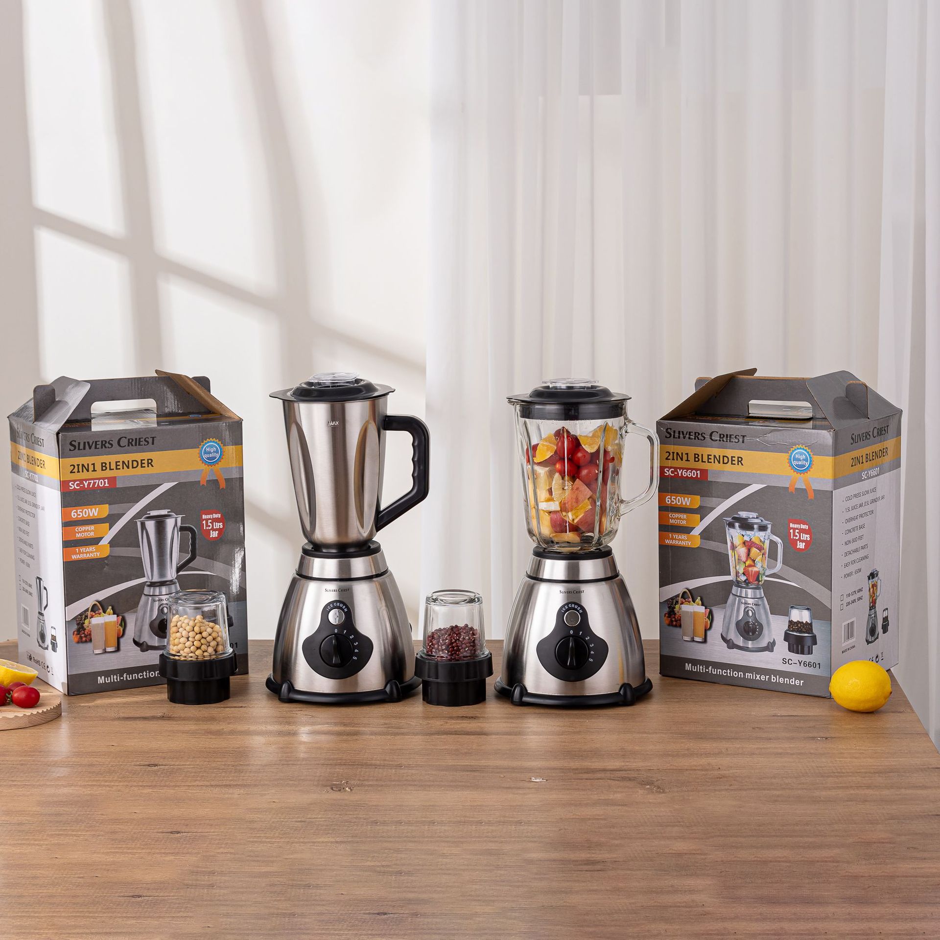 Product capacity: 1.5L mixing cup + 0.5 grinding cup