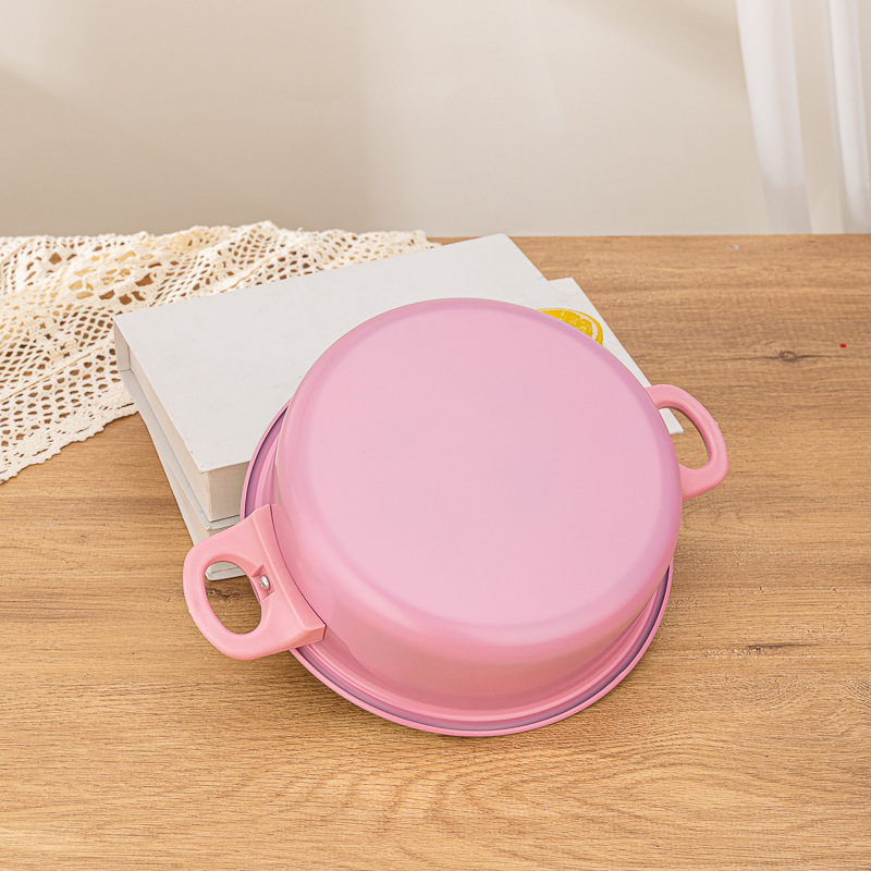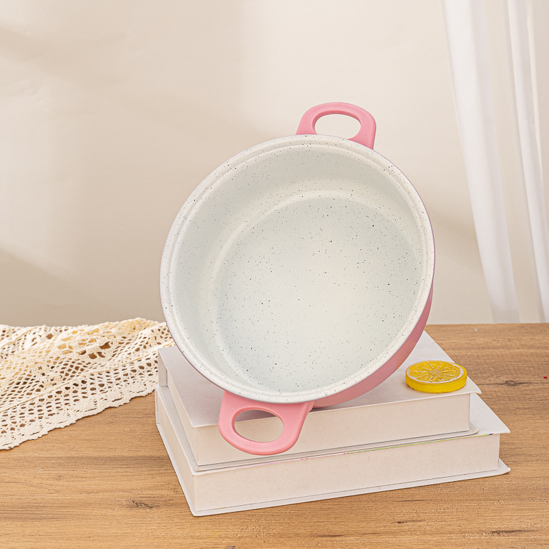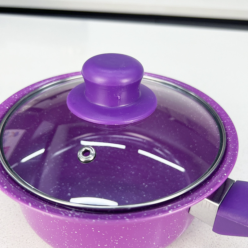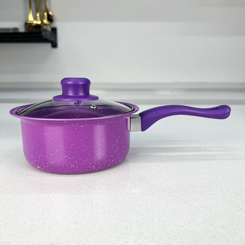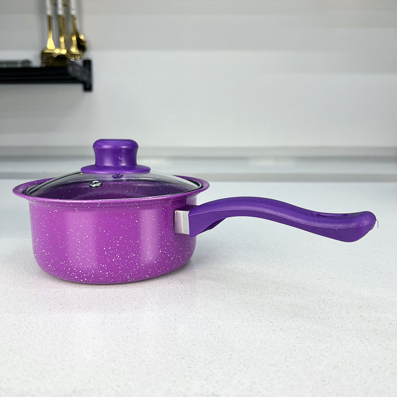 Product size: 7 * 16 cm milk pot, 7 * 18 cm stockpot, 8 * 22 cm stockpot, 4 * 22 cm frying pan, spoon 27.5cm * 6"