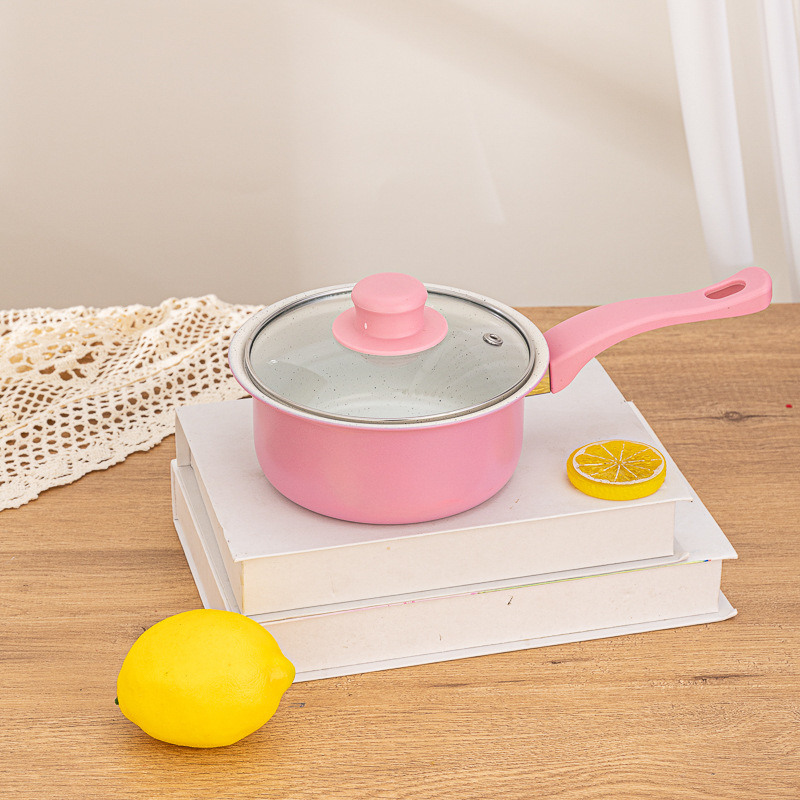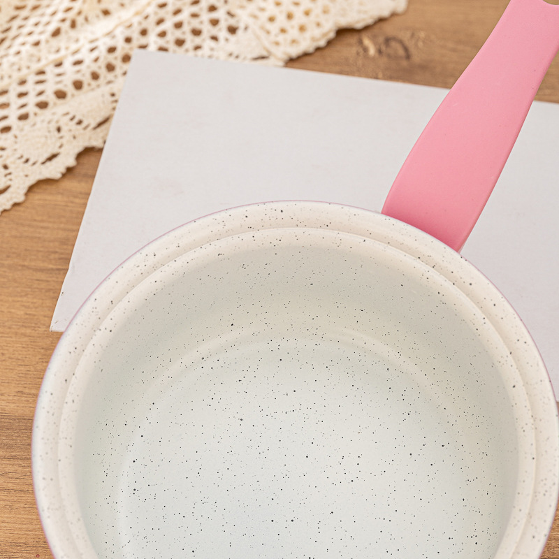 Product Size: 7 * 16 cm Milk Pot, 7 * 18 cm Soup Pot, 8 * 22 cm Soup Pot, 4 * 22 cm Frying Pan, Spoon: 27.5cm * 6"