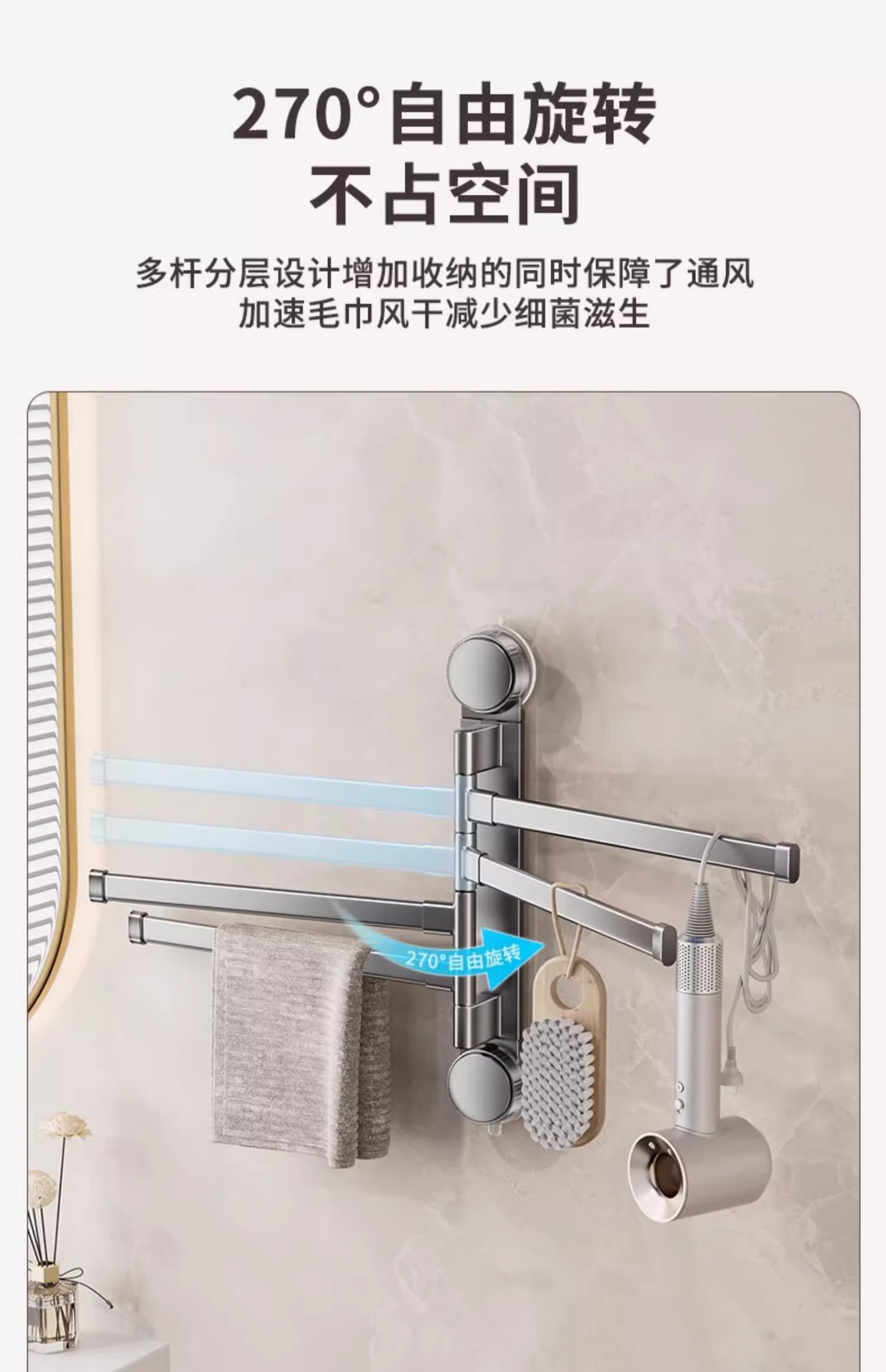 [gun gray] suction cup rotating 4 rod 42cm