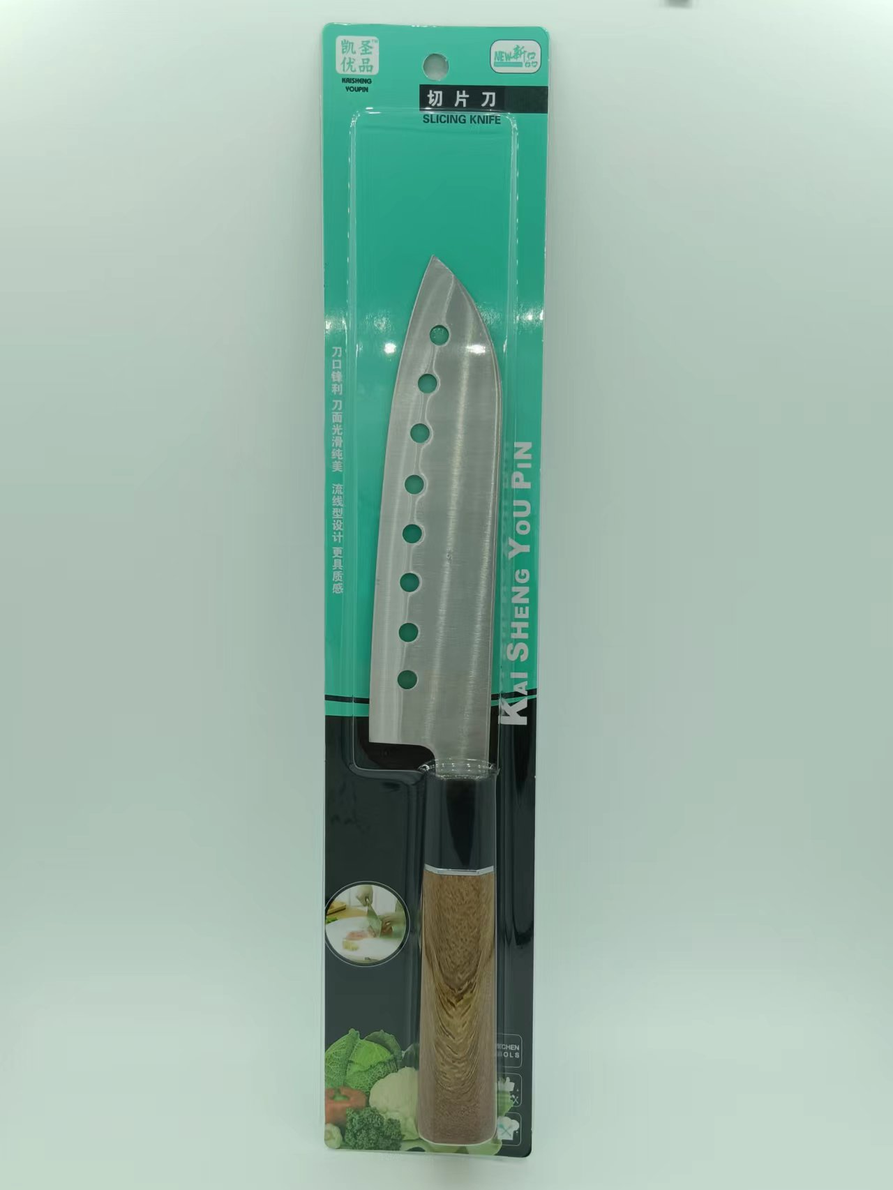 wooden handle with hole slicing knife card insertion kitchen good helper 中文版