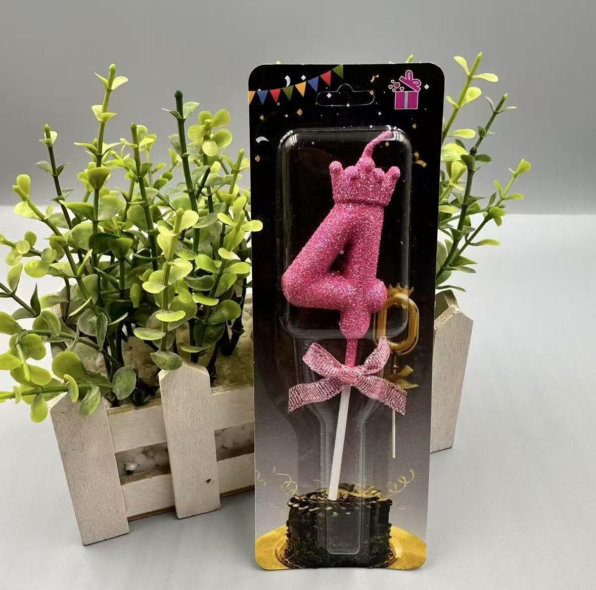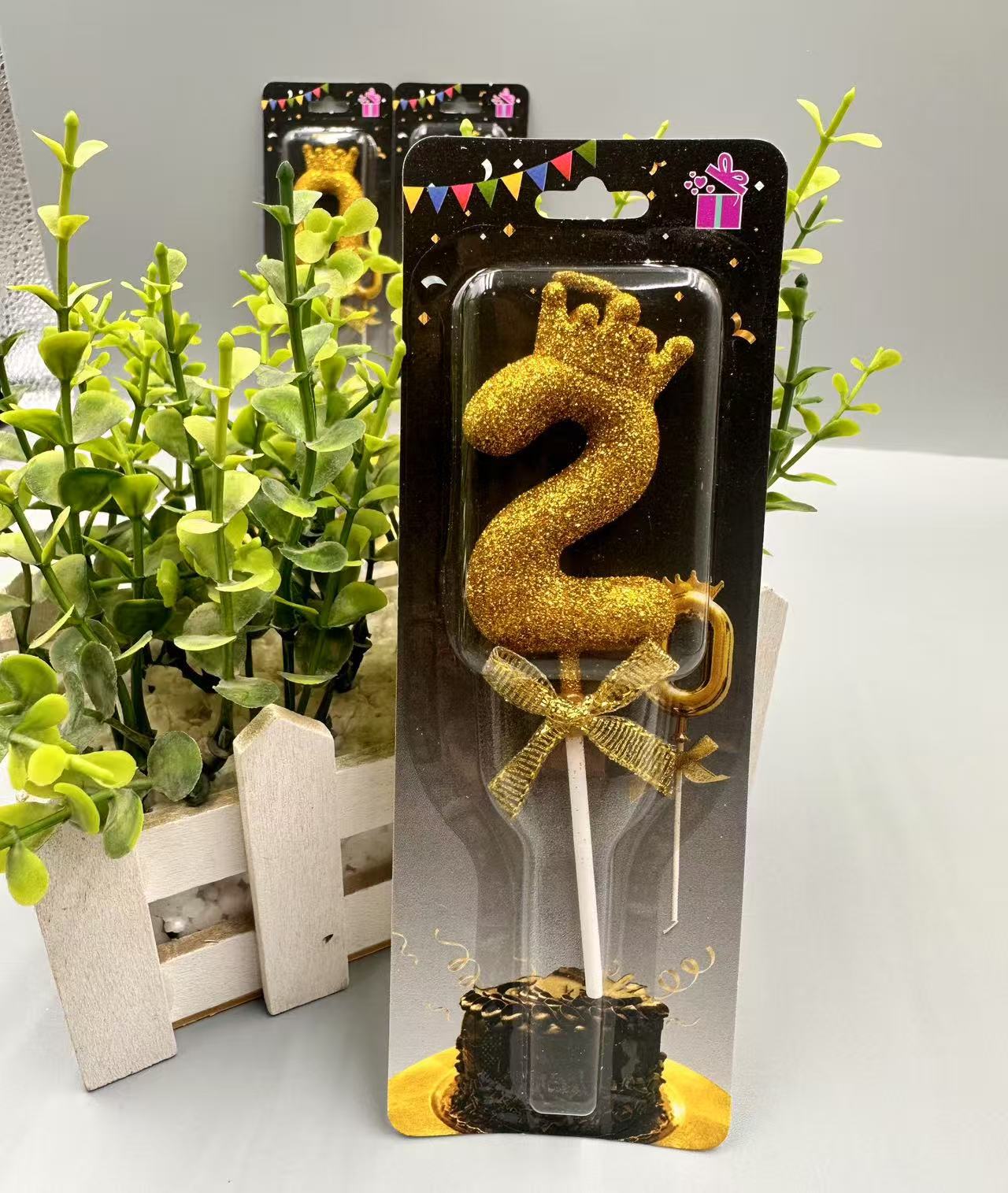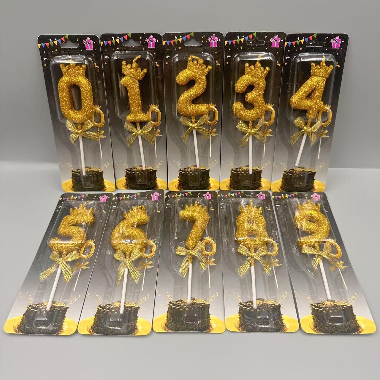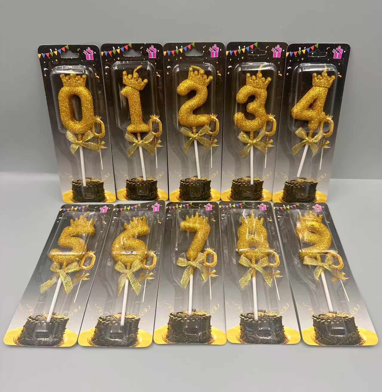 children's birthday crown candle golden digital candle cute cake candle bow decoration 中文版