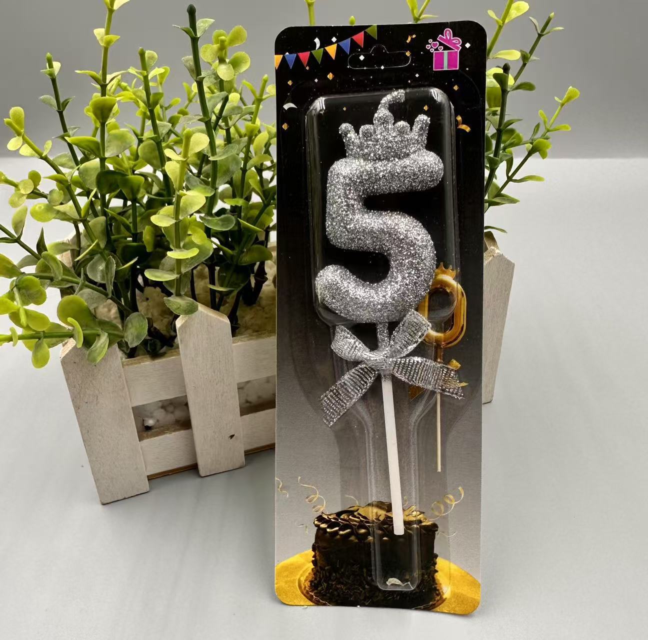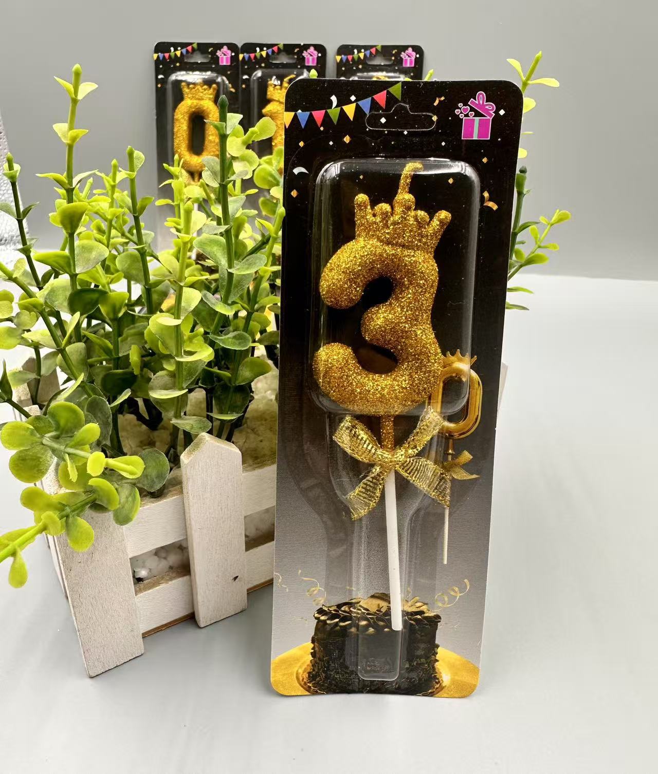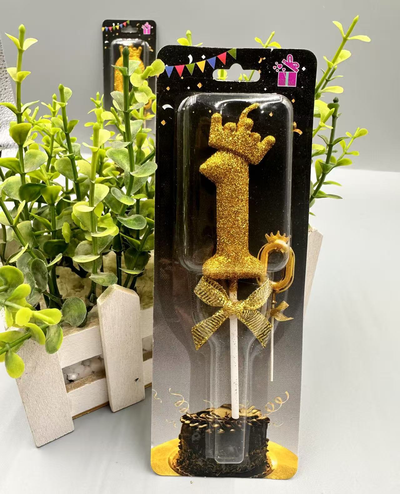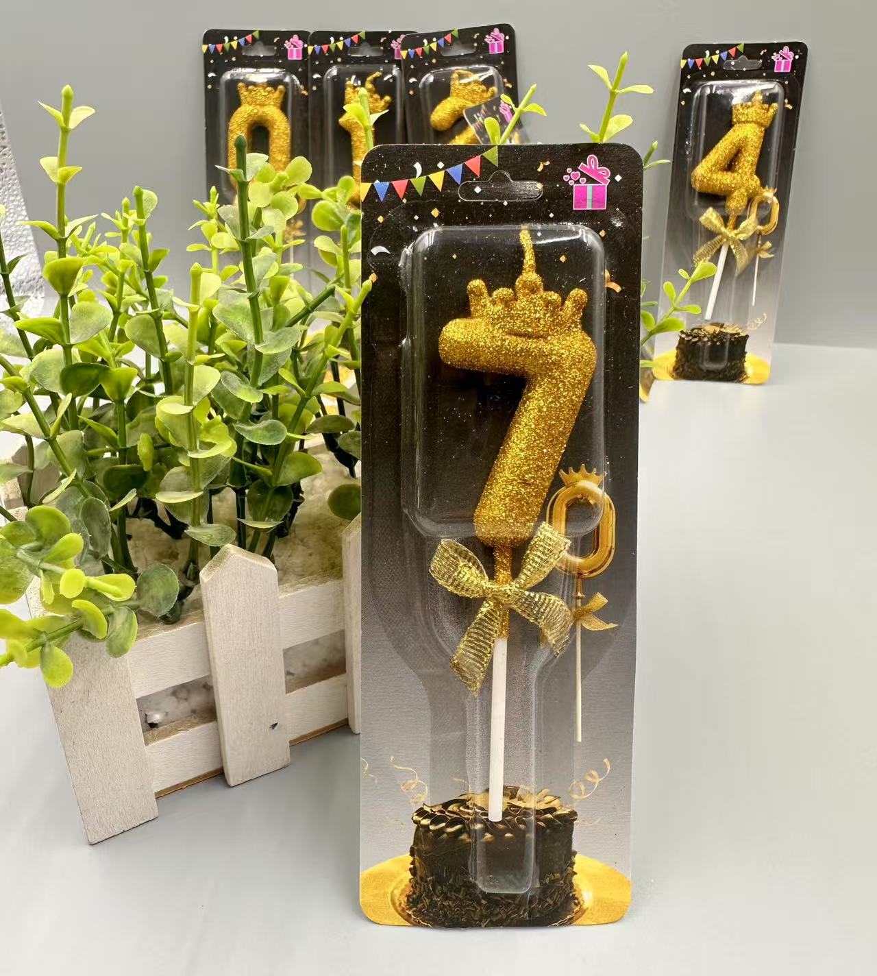 children's birthday crown candle golden digital candle cute cake candle bow decoration 中文版
