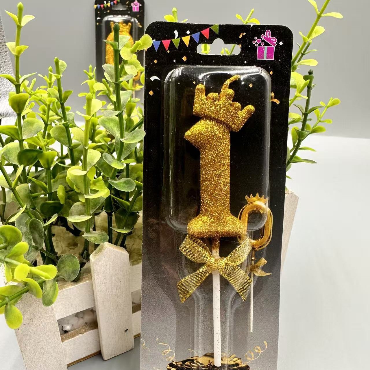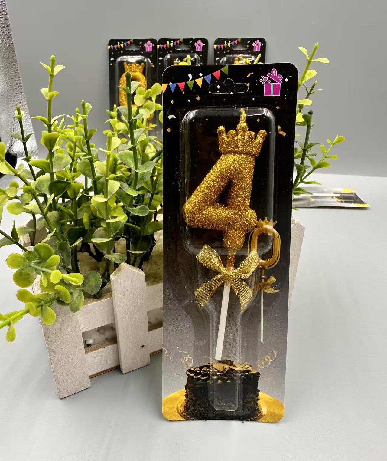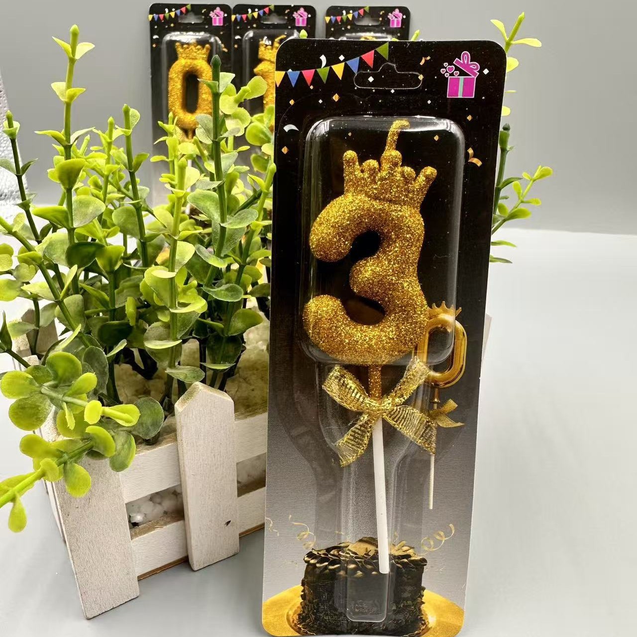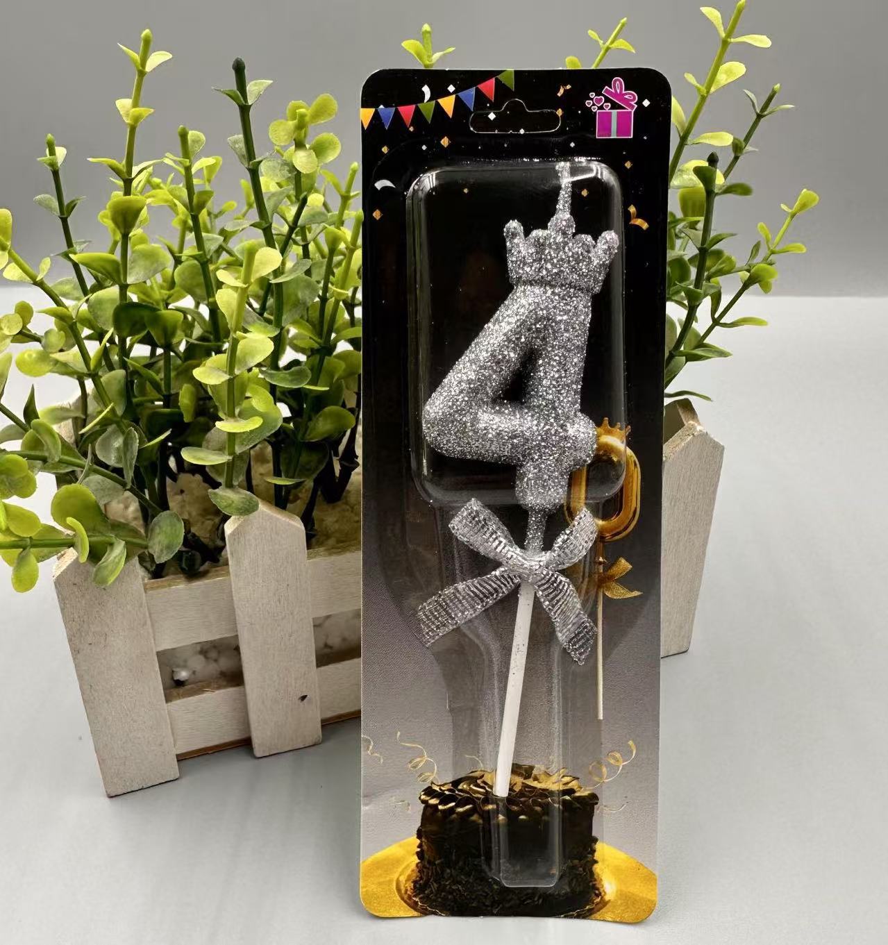 children's birthday crown candle golden digital candle cute cake candle bow decoration 中文版