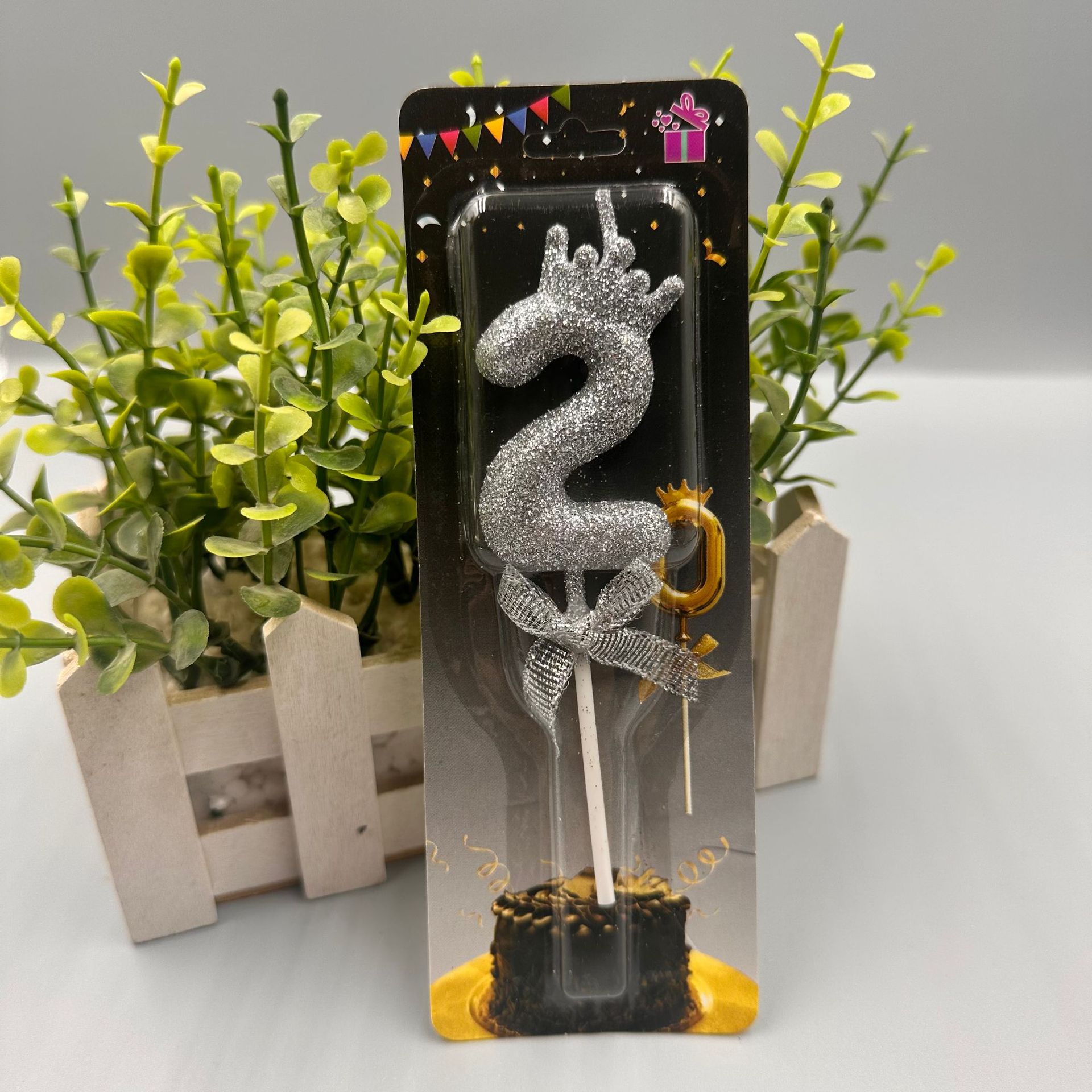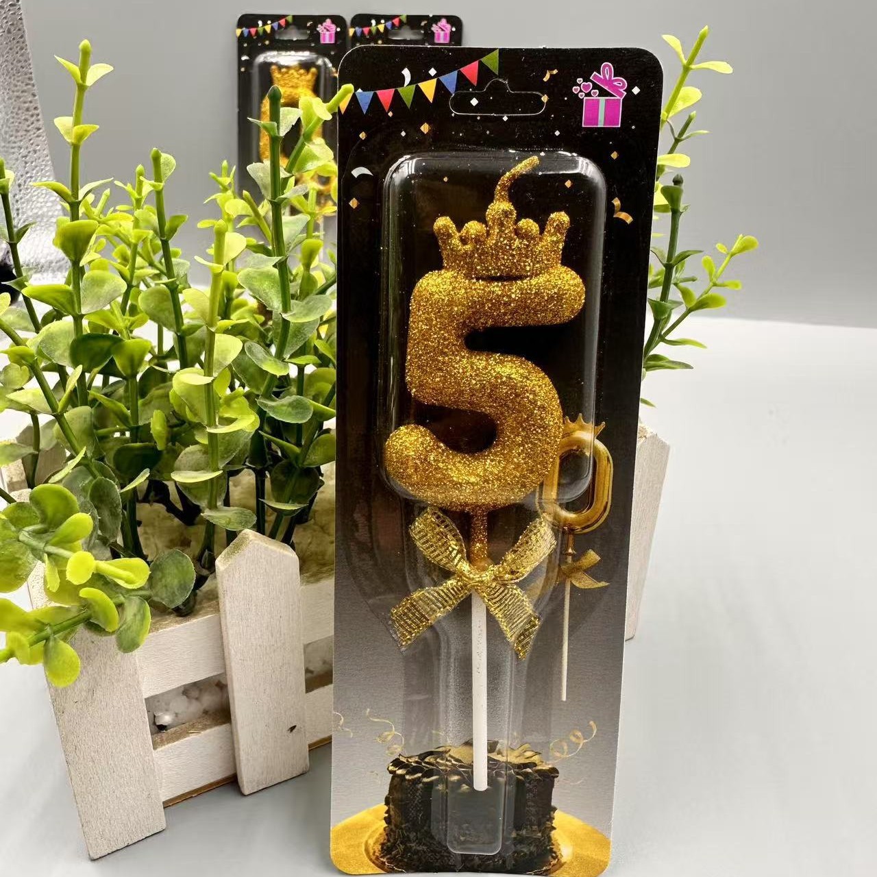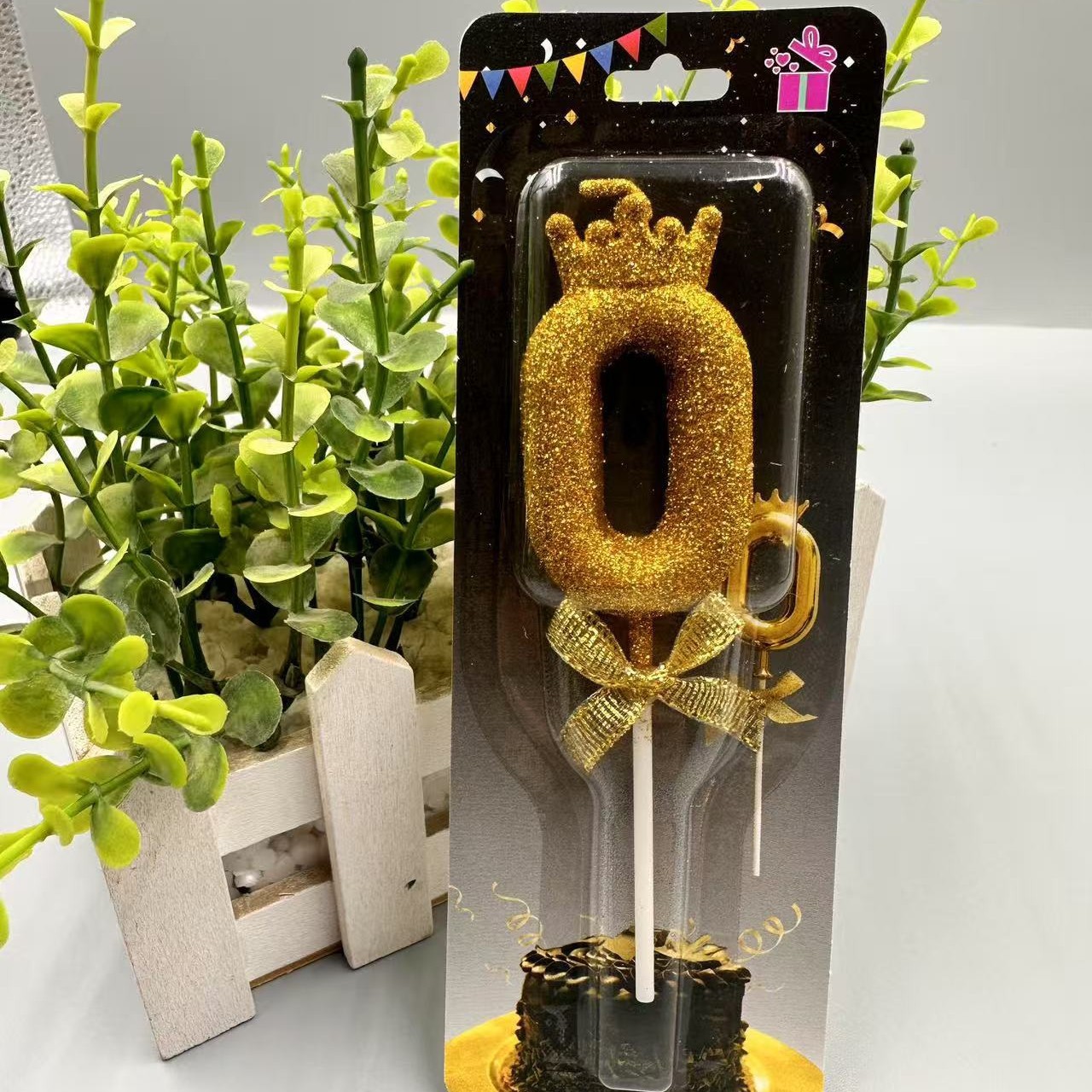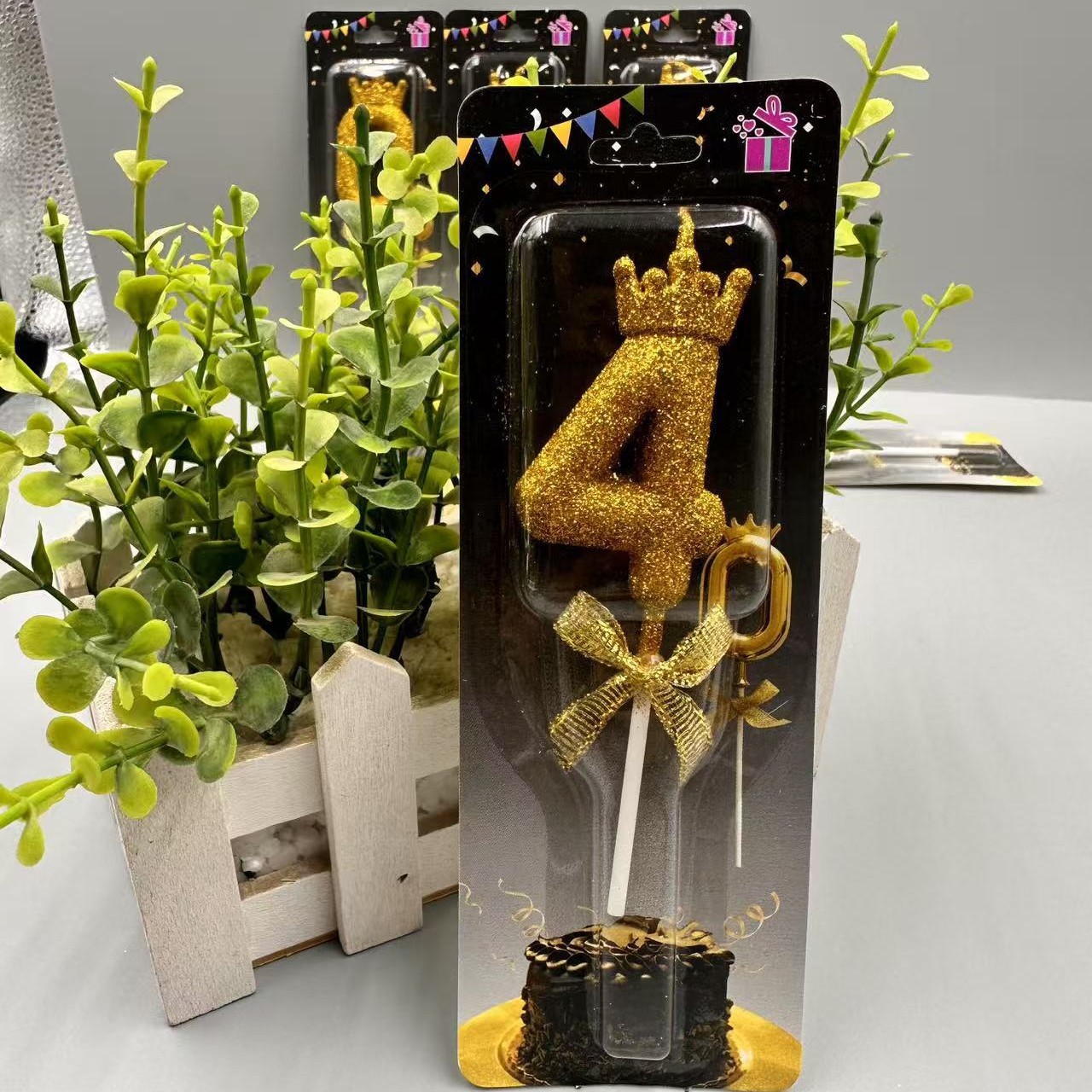 children's birthday crown candle golden digital candle cute cake candle bow decoration 中文版