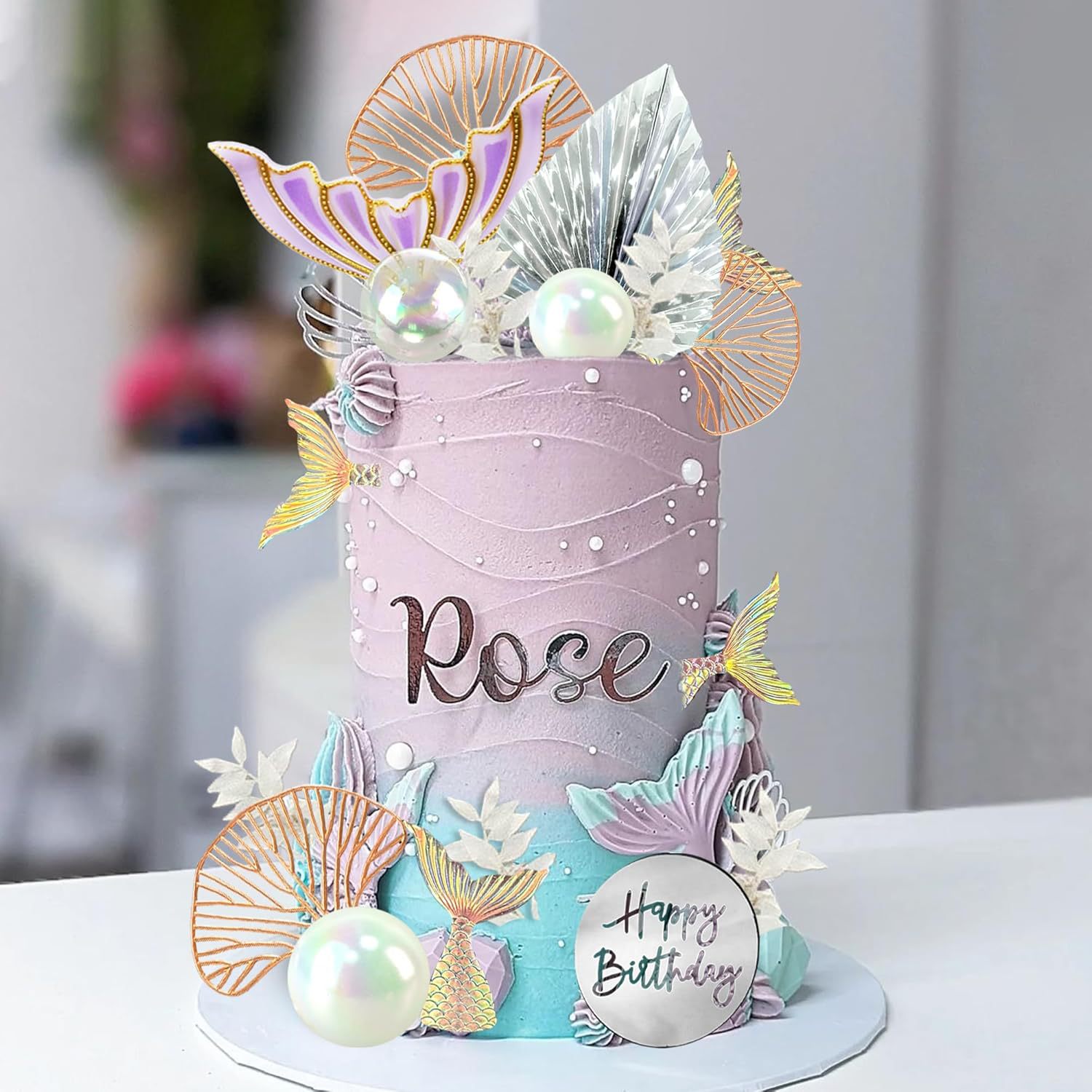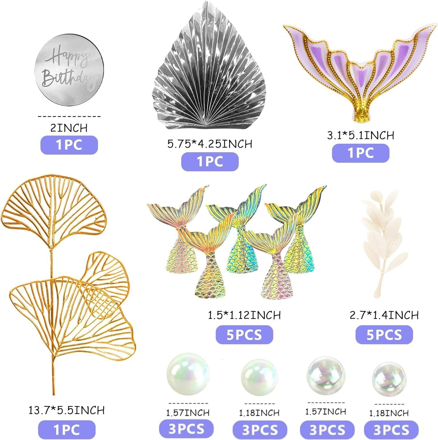 mermaid party cake decoration mermaid tail transparent pearl ball ginkgo leaf happy birthday inserts 中文版
