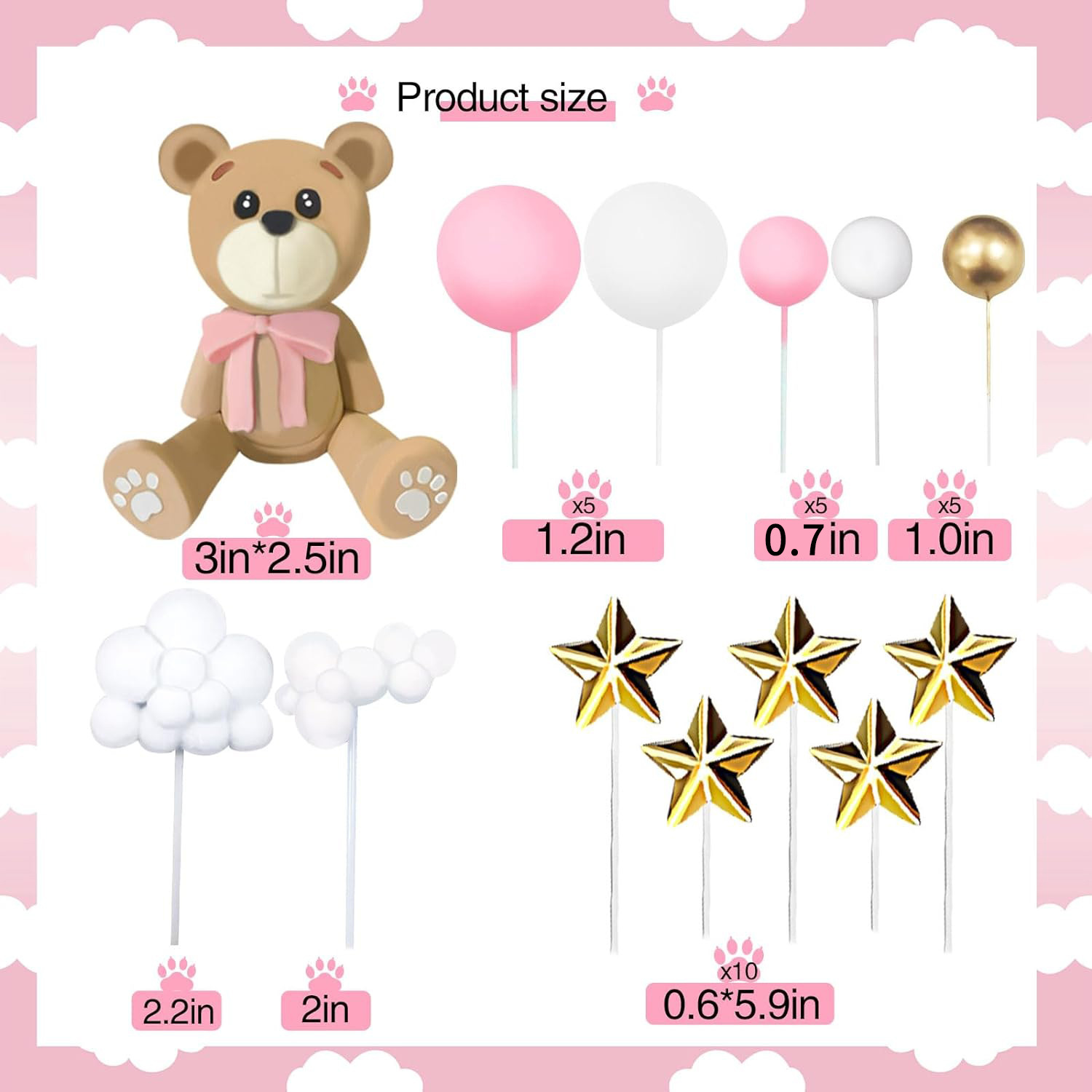 33 pieces teddy bear cake decoration xingx clouds cake ball boy girl birthday party cake decoration