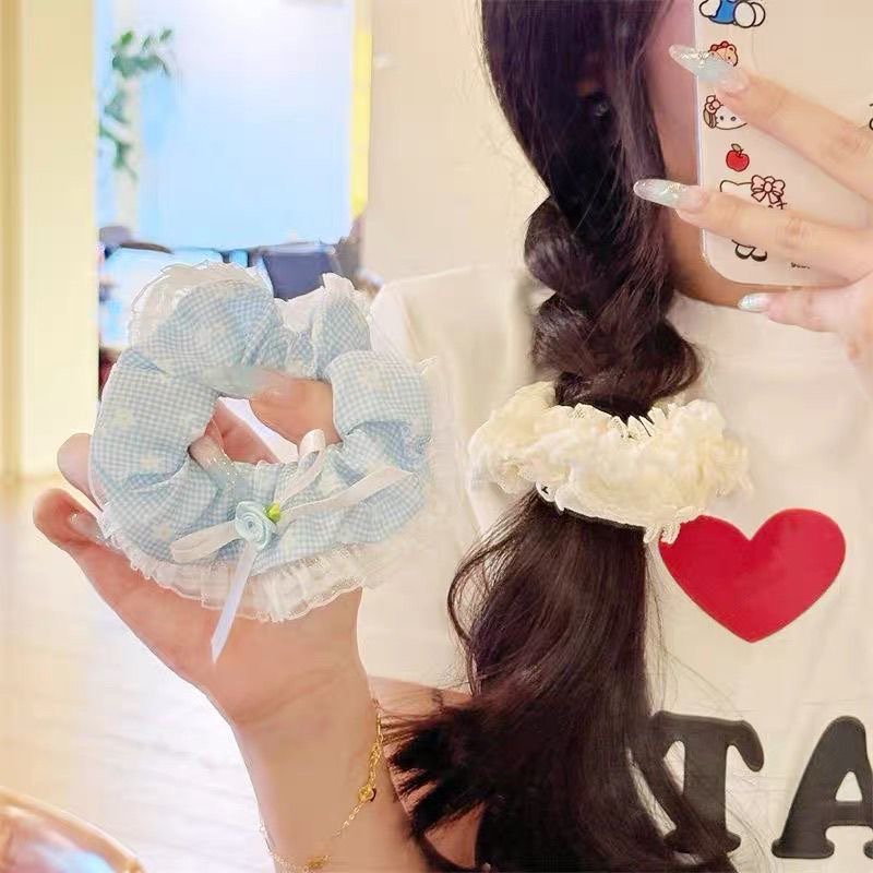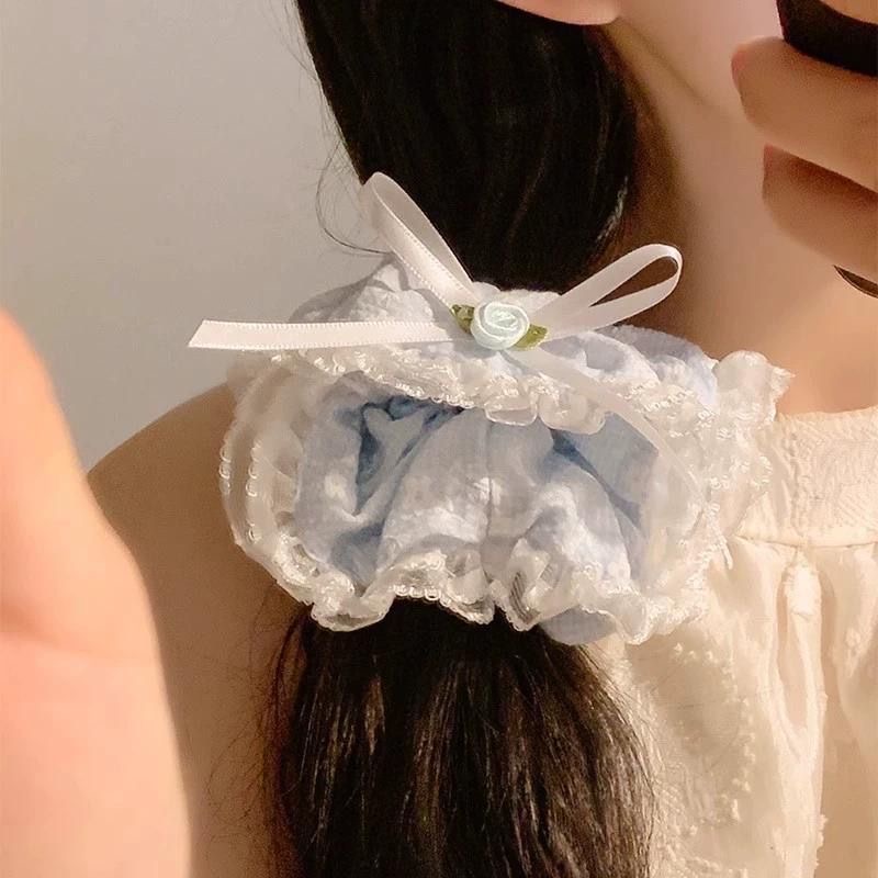 girl large intestine hair ring floral all-match lace bow hair rope temperament ponytail hair string hair accessories 中文版