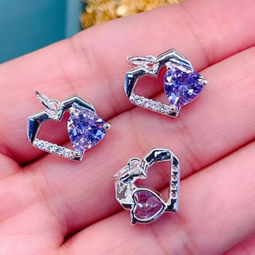 Heart-shaped pendant, outlined with delicate silver jewelry, the embedded gemstones either present a dreamy purple or a gentle pink, shining brilliantly. Each gem seems to hold a secret, quietly telling tales of romance and deep affection, making it an excellent choice for decorating everyday life and conveying one's feelings.