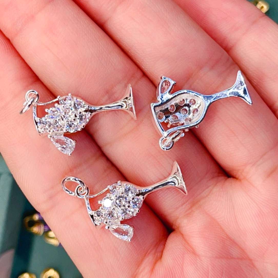 The pendant in the shape of a wine glass, with a unique charm. The brilliant gemstones overflow like nectar in the wine glass, shining brightly under the silver backdrop. The exquisite design combines the romantic imagery of fine wine with an elegant style, making it a touch of brilliance that can add unique charm to one's appearance.