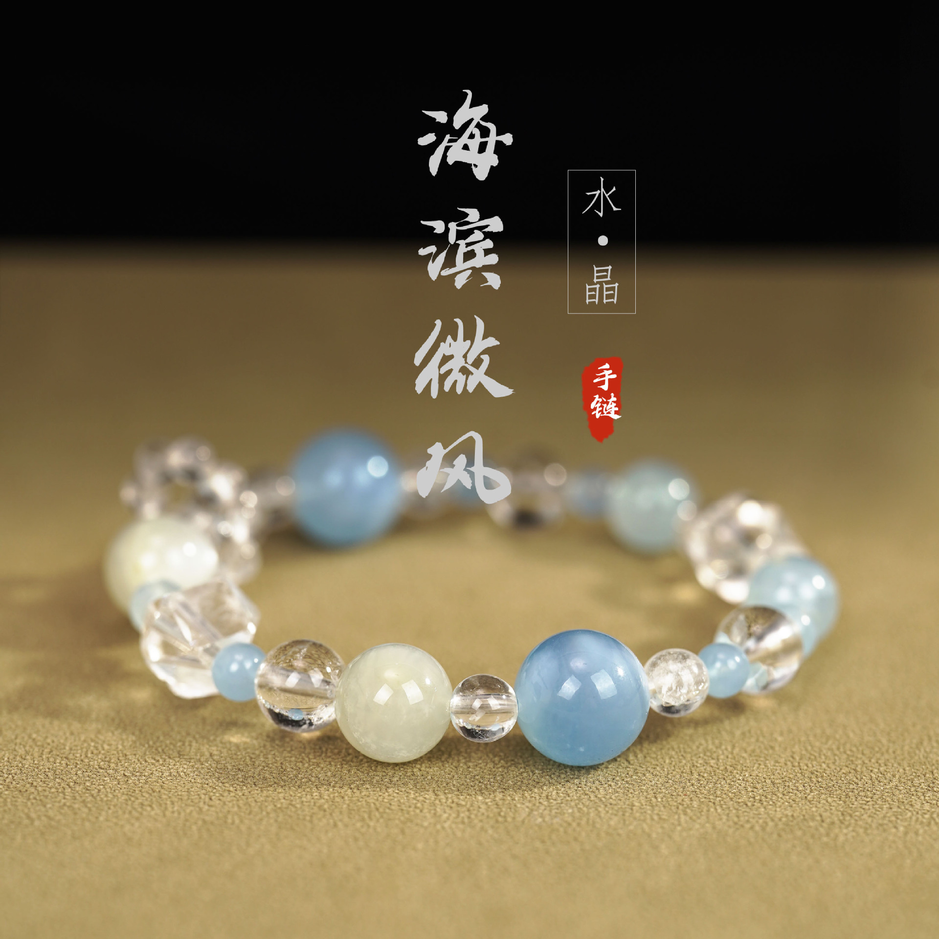 【Product Name】: Natural White Crystal + Aquamarine Beaded Bracelet"Product Weight": About 20 grams