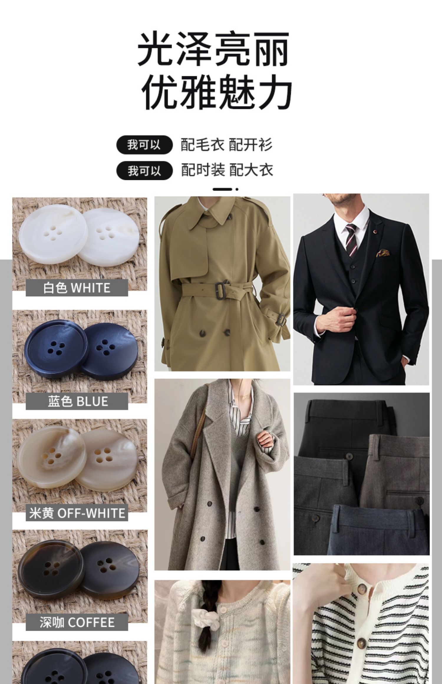 high-end women's coat button black button high-end exquisite fashion men's suit suit trousers coat and trench coat button