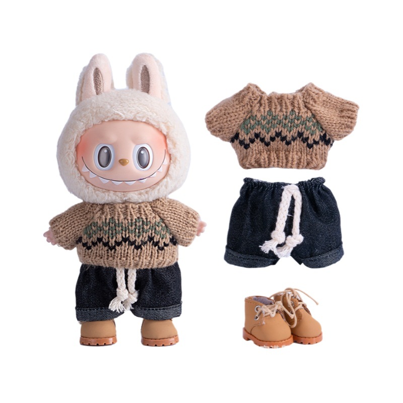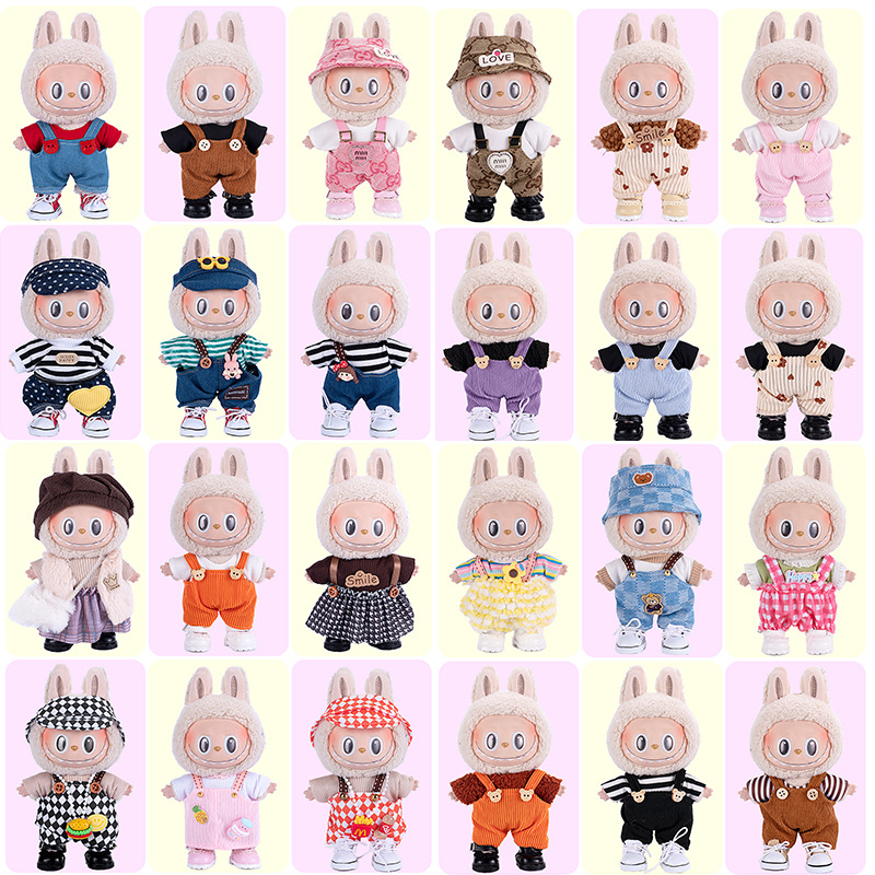 [Product name]]:15-17cm first, second and third generation Labubu clothes hanging ornament automobiles curtain cloth seat doll clothes 8-word Plaid suspender pants suit