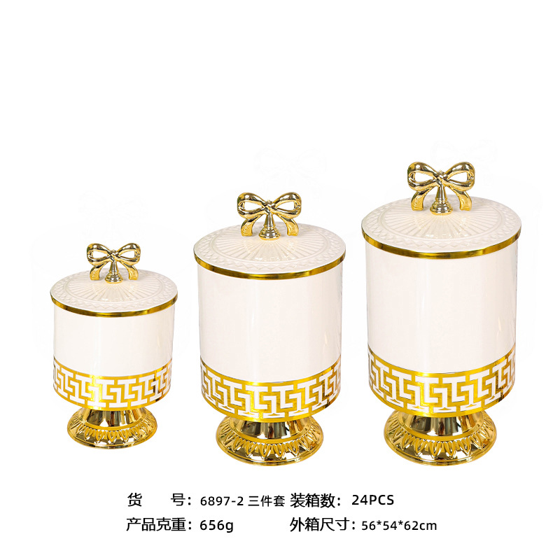 white european-style retro high-leg gold-plated candy box seasoning containers nut jar light luxury european-style jar storage jar