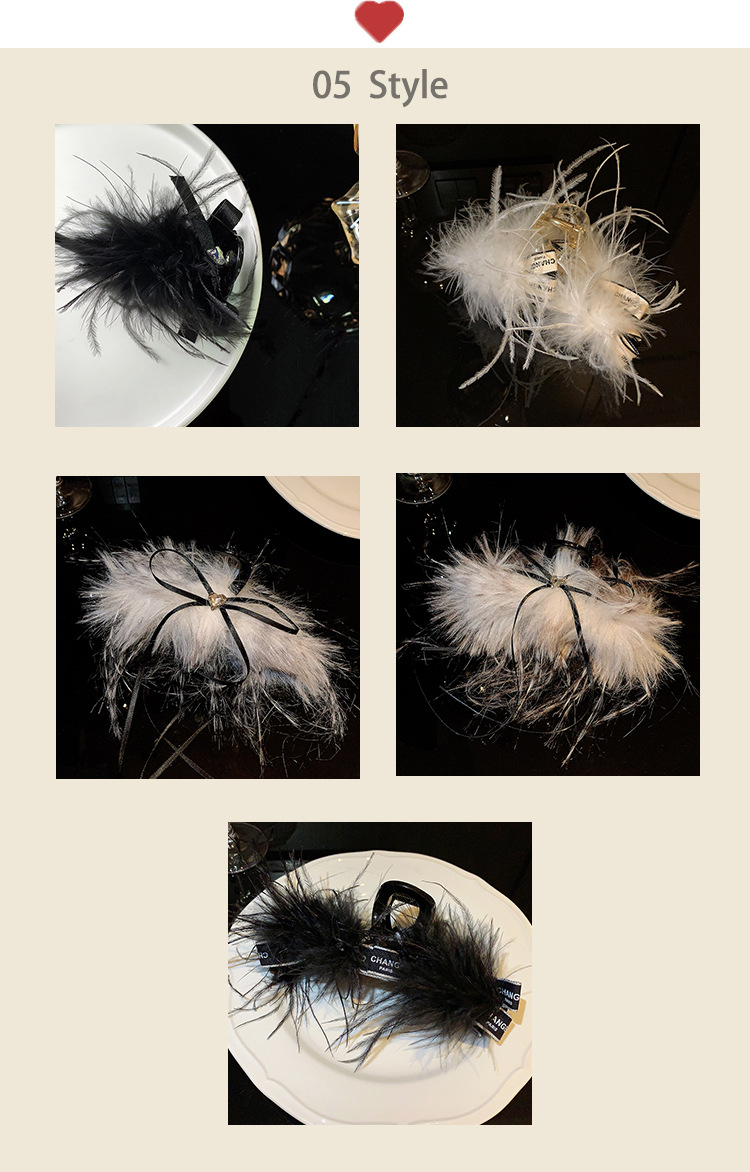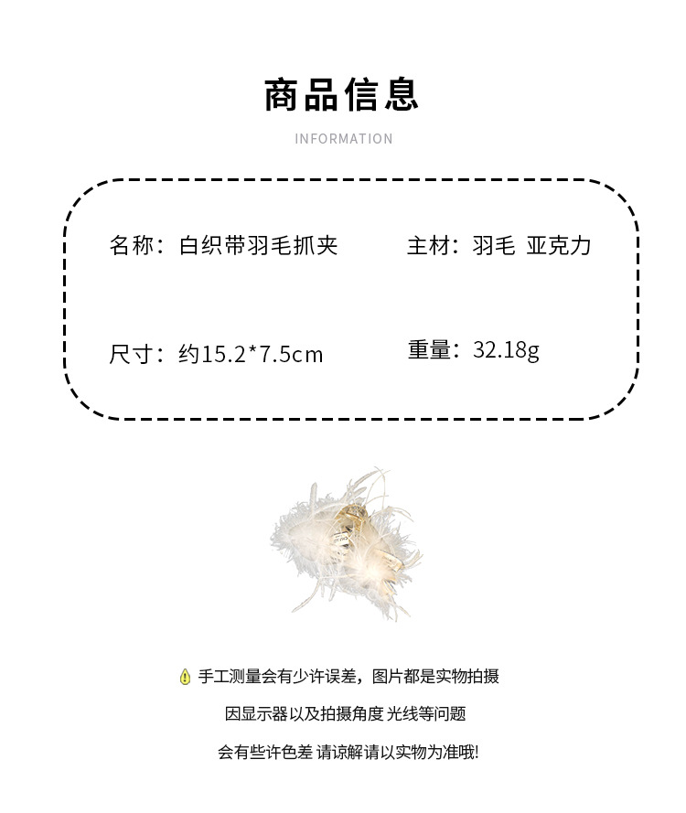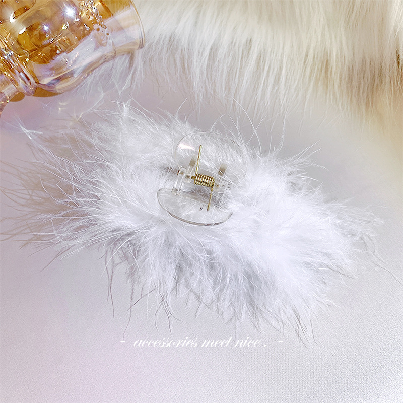 white feather duckbill clip (hn0142)