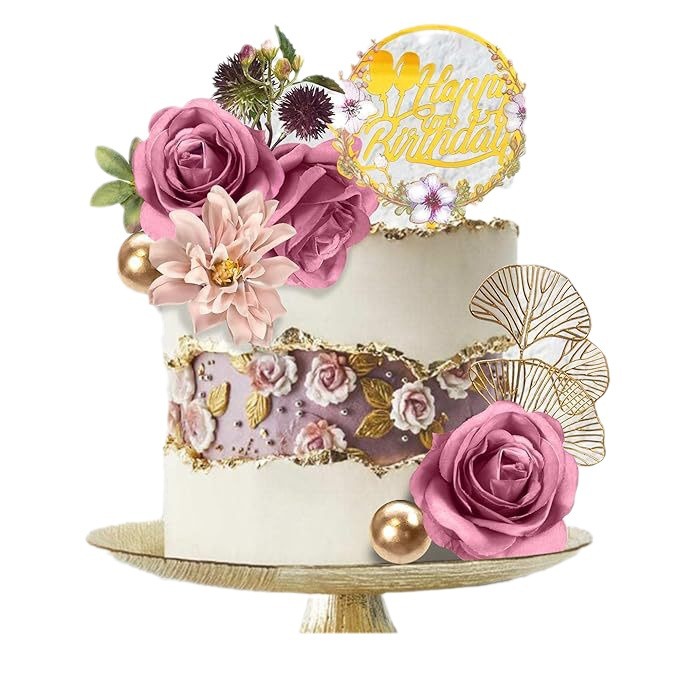 flower cake decoration happy birthday cake purple rose flower eucalyptus leaves for birthday party wedding baby 中文版