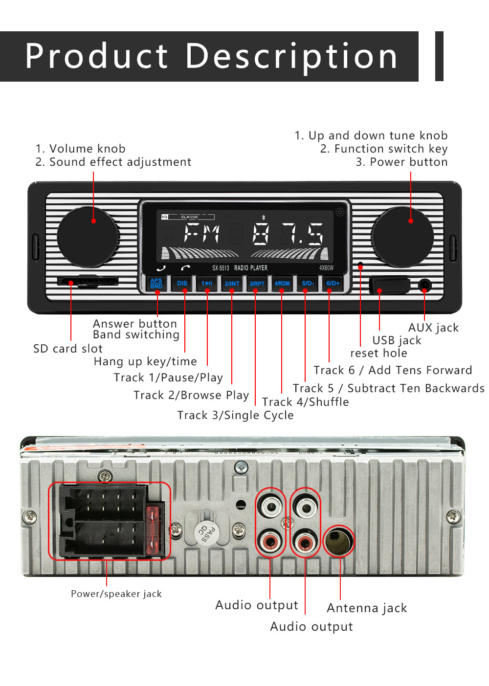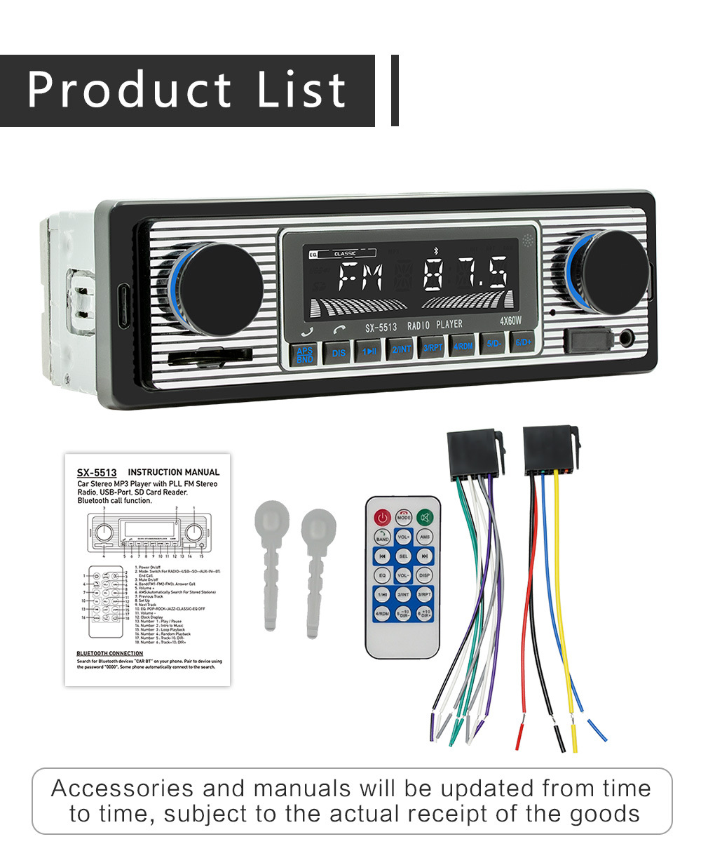 automotive mp3 player usb music playback bluetooth car center console fm radio 中文版