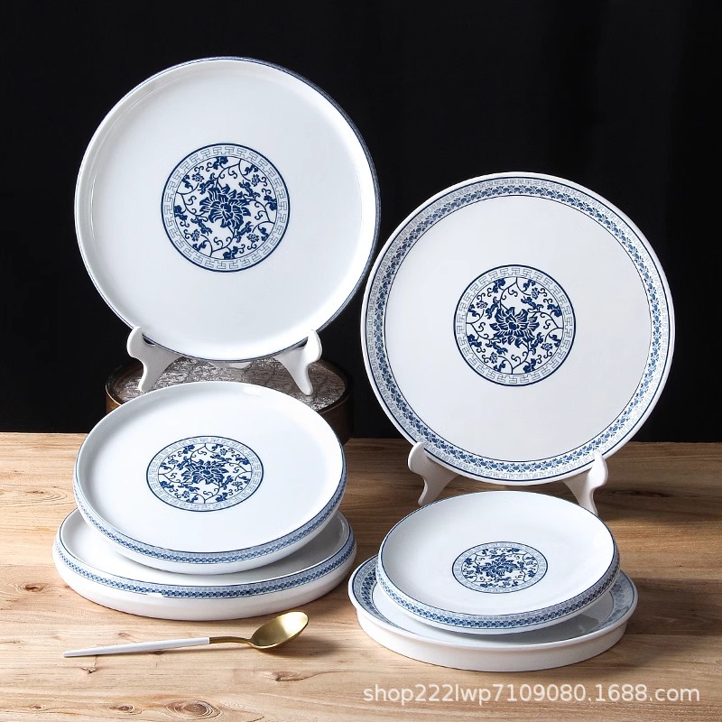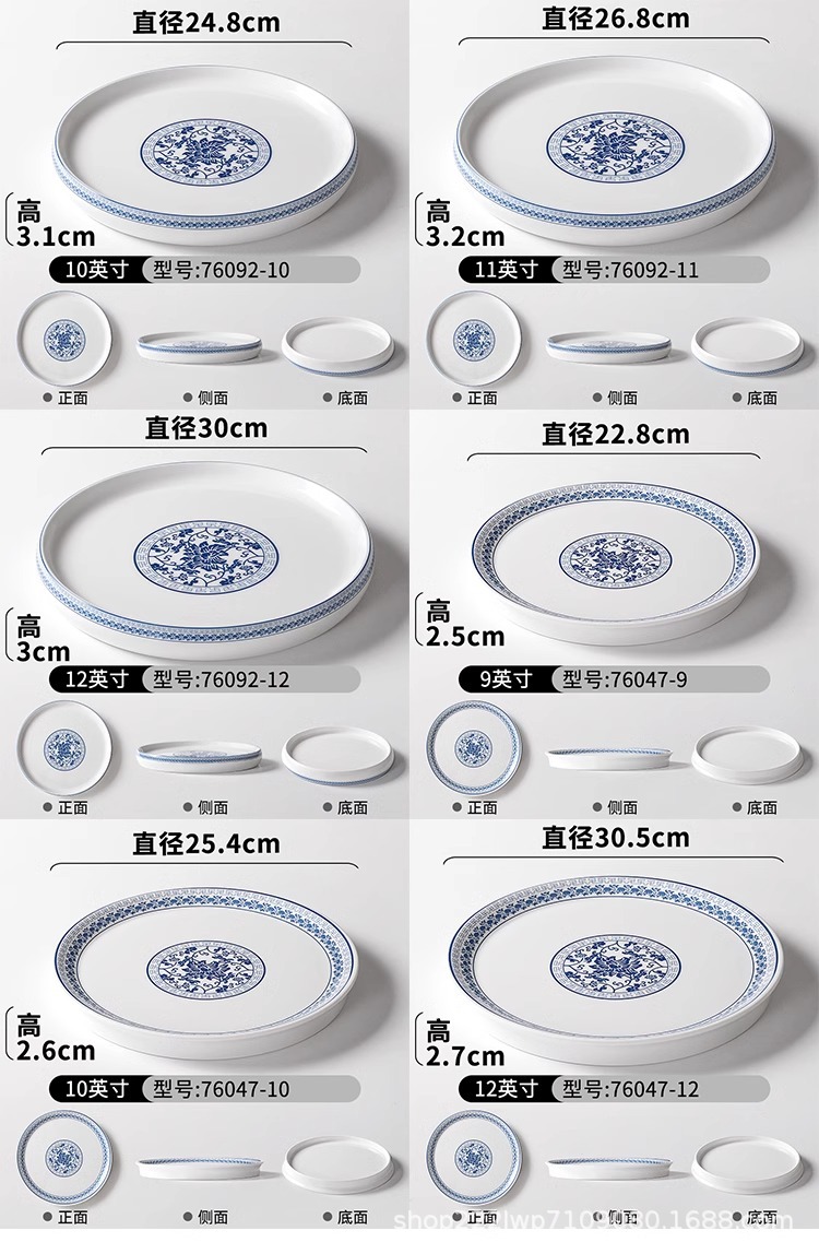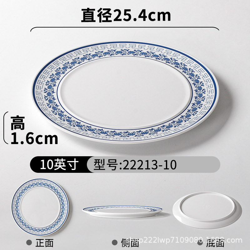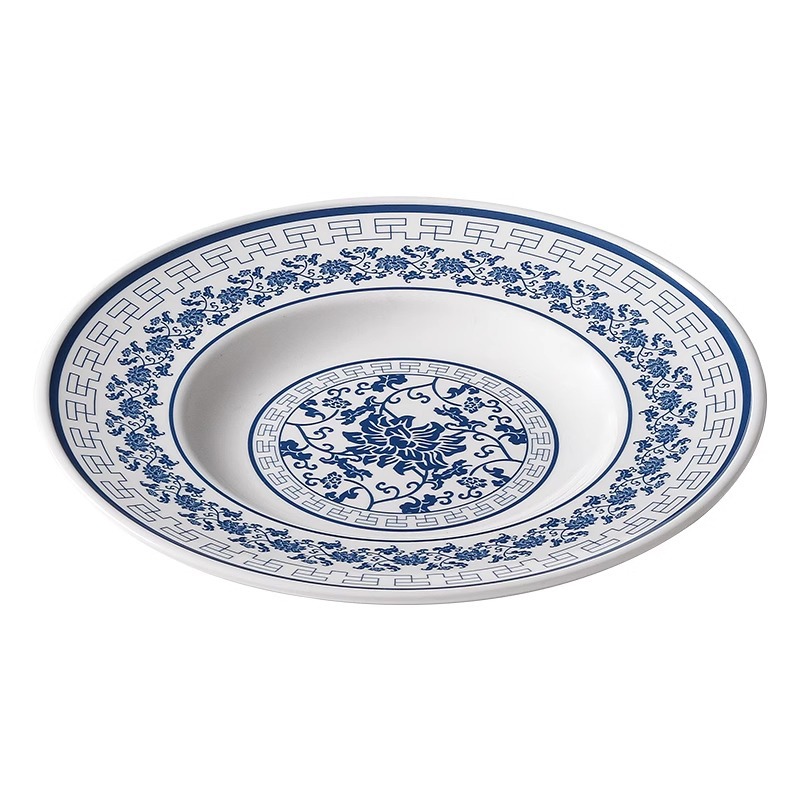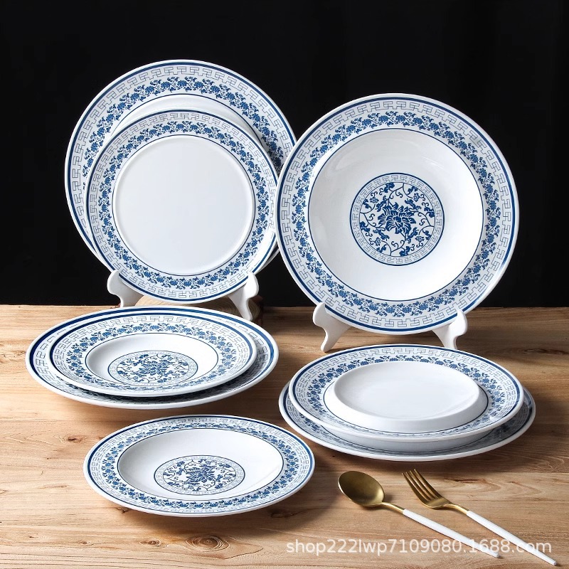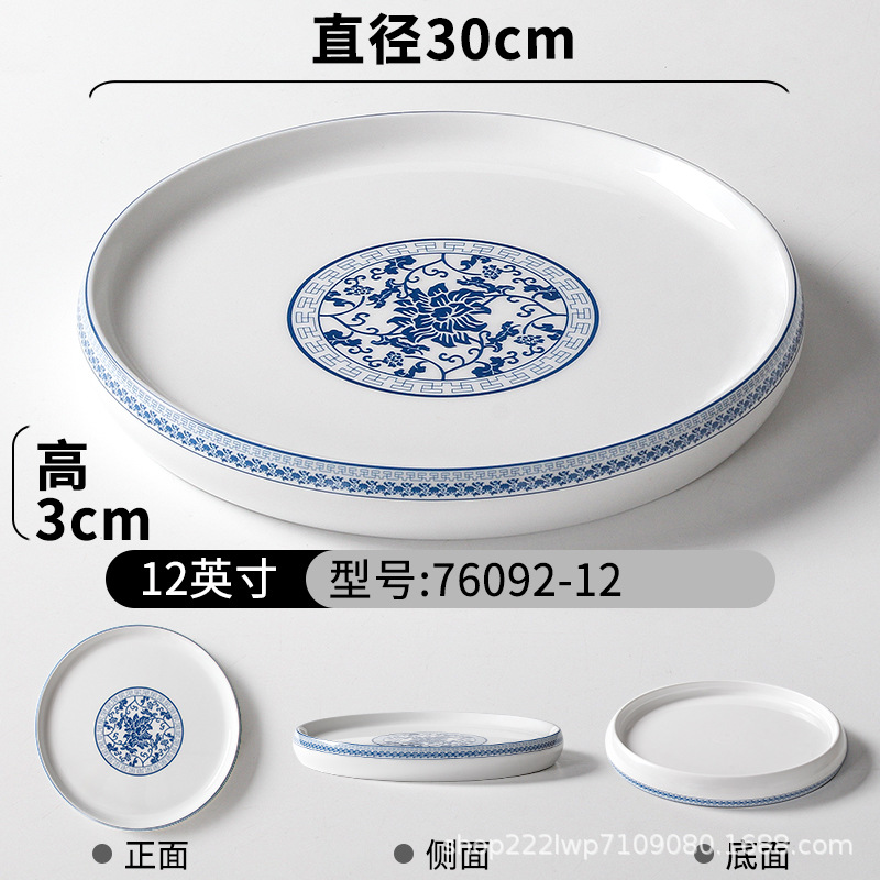 melamine dinnerware cutlery plate hot pot restaurant blue and white disc deep plates restaurant restaurant cooking shallow plate commercial side dish plate 中文版