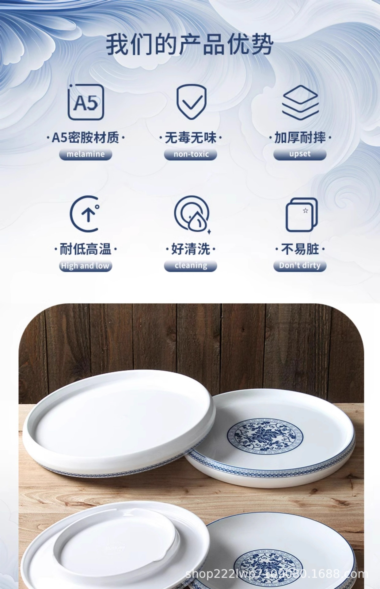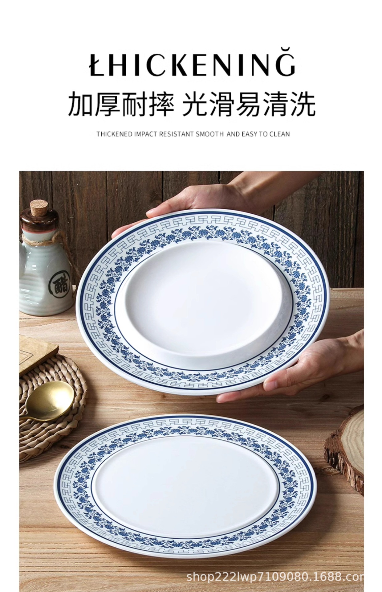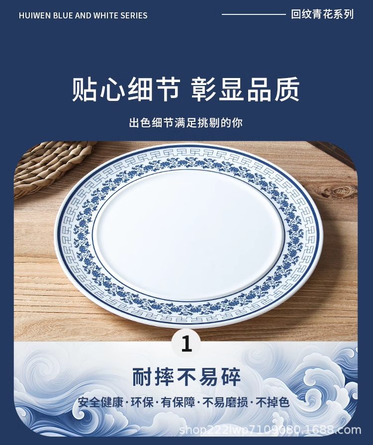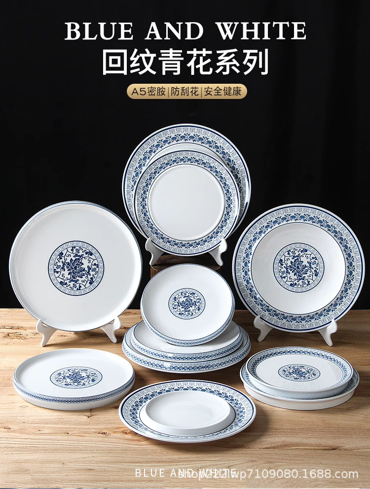 melamine dinnerware cutlery plate hot pot restaurant blue and white disc deep plates restaurant restaurant cooking shallow plate commercial side dish plate 中文版