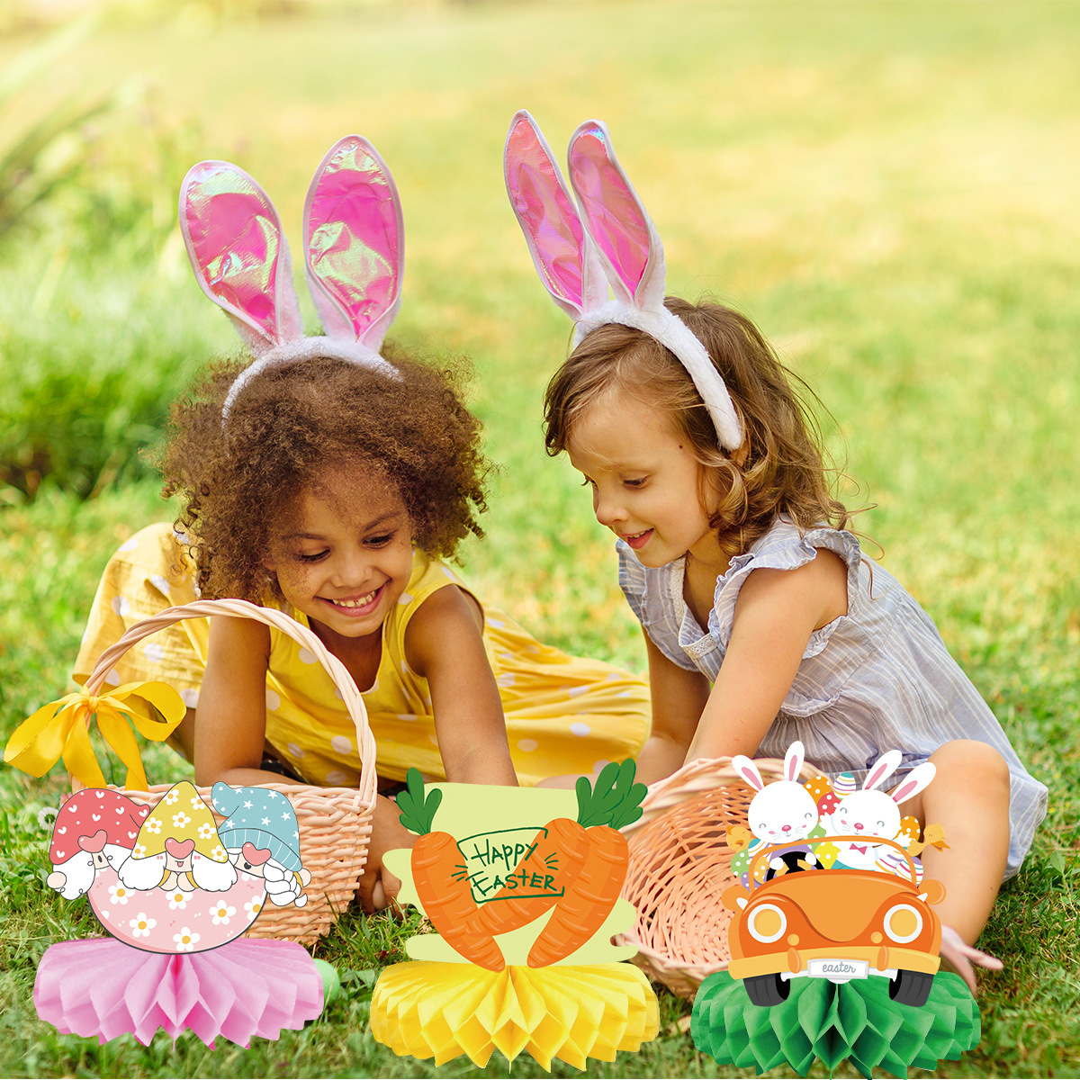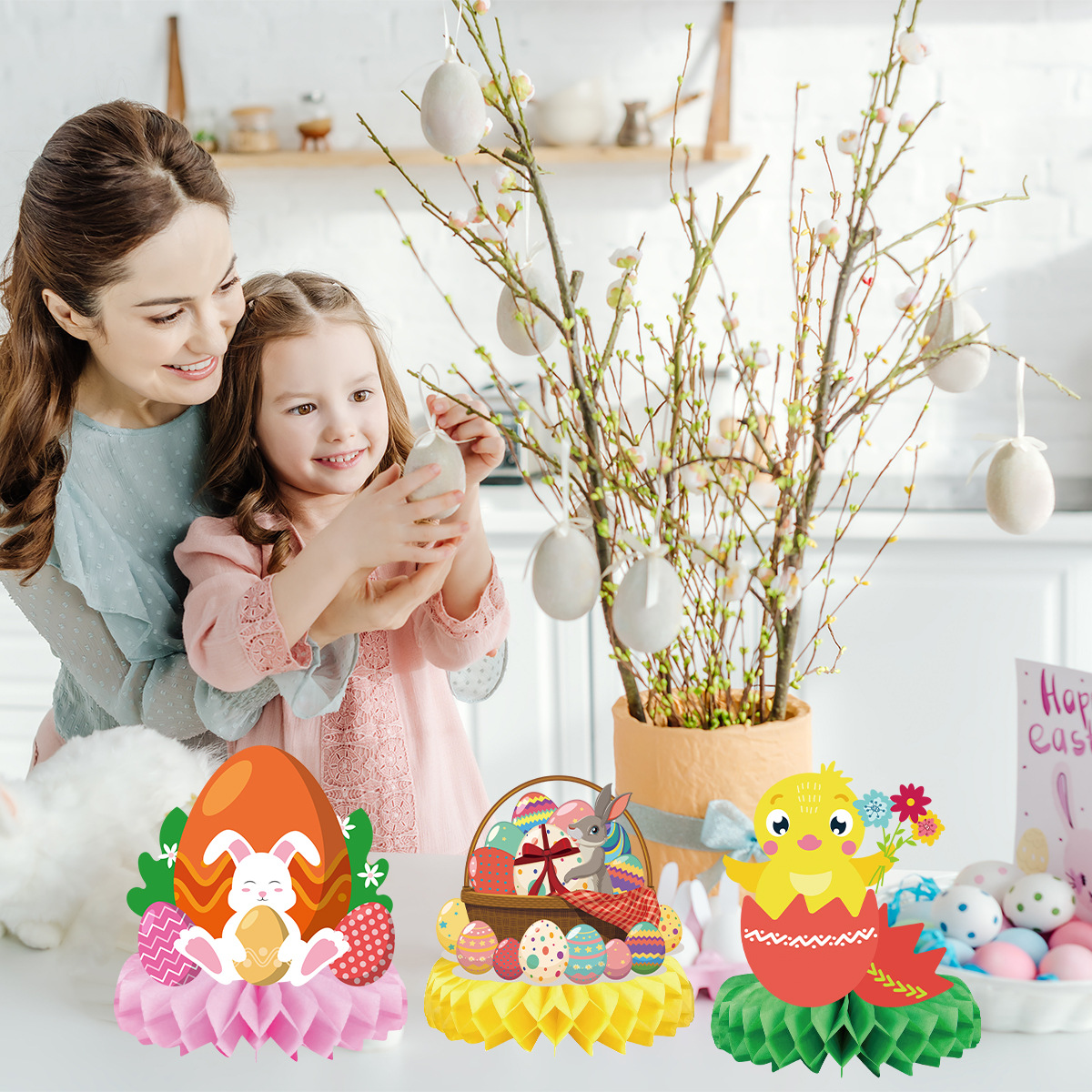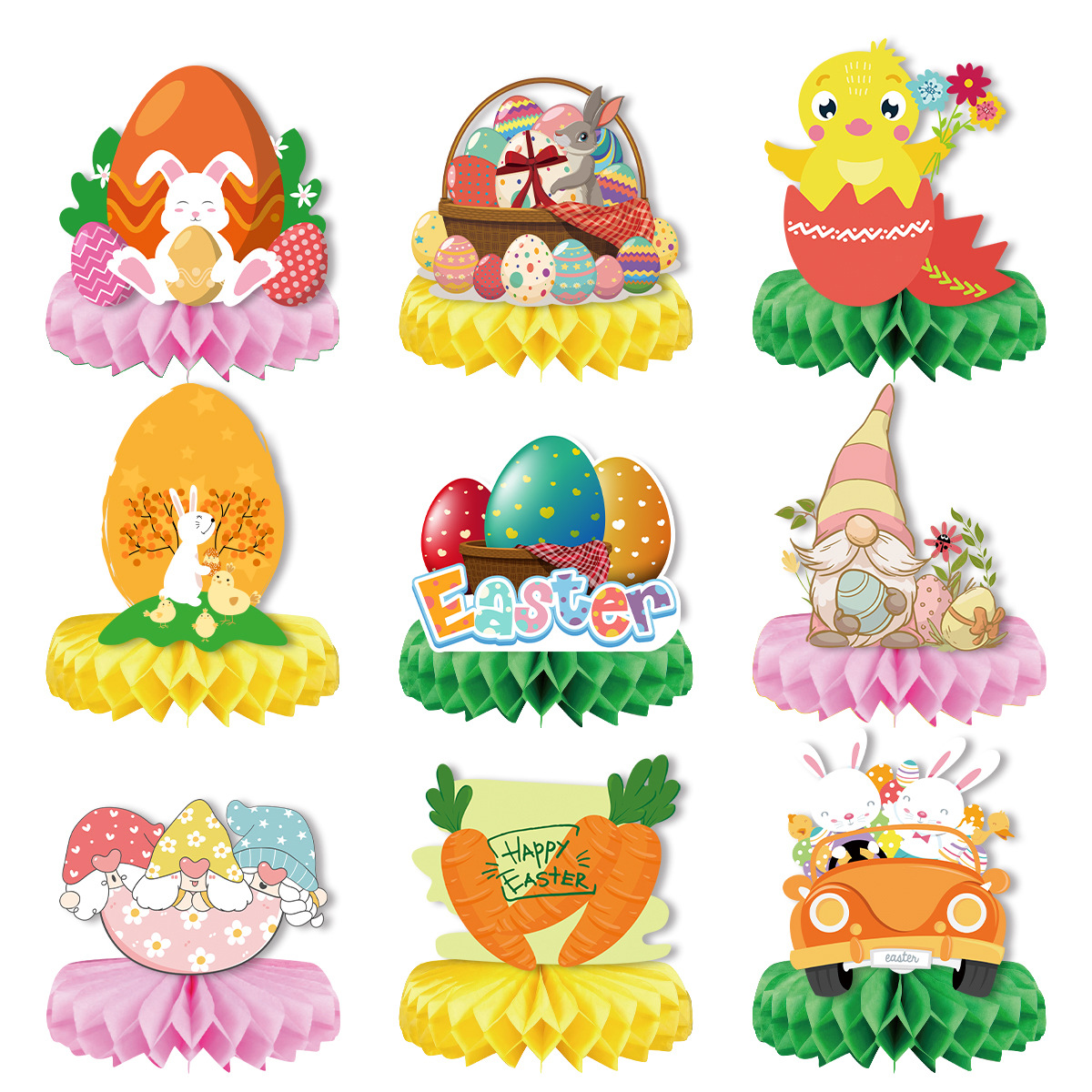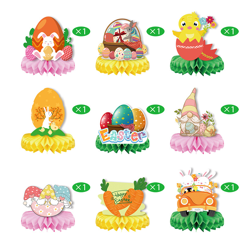 easter table ornaments easter paper fan honeycomb ball ornaments table decoration egg rabbit layout supplies 中文版