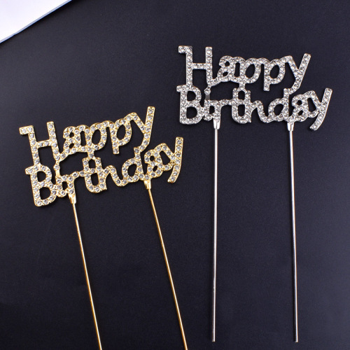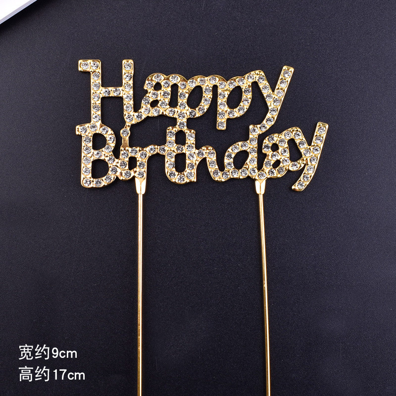 happy birthday cake inserting card wrought iron rhinestone letters cake decoration card goddess party festival baking decoration 中文版
