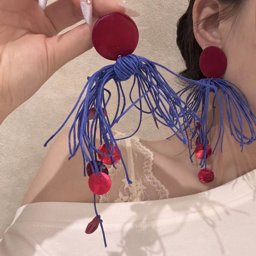 elegant earrings exaggerated personalized long red and blue together earrings high sense dress and cheongsam morning gowns ear rings 中文版