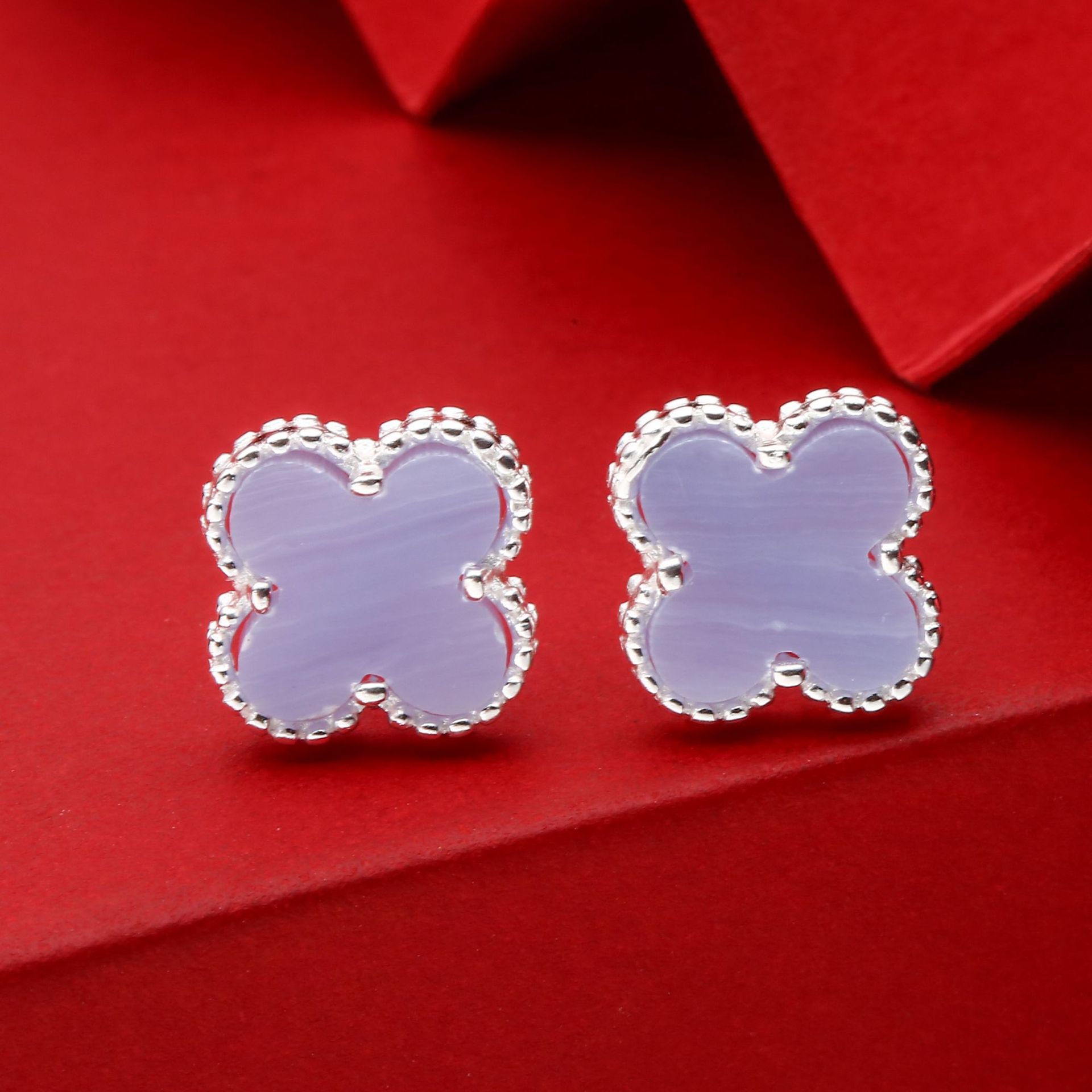 purple agate four leaf clover ear stud