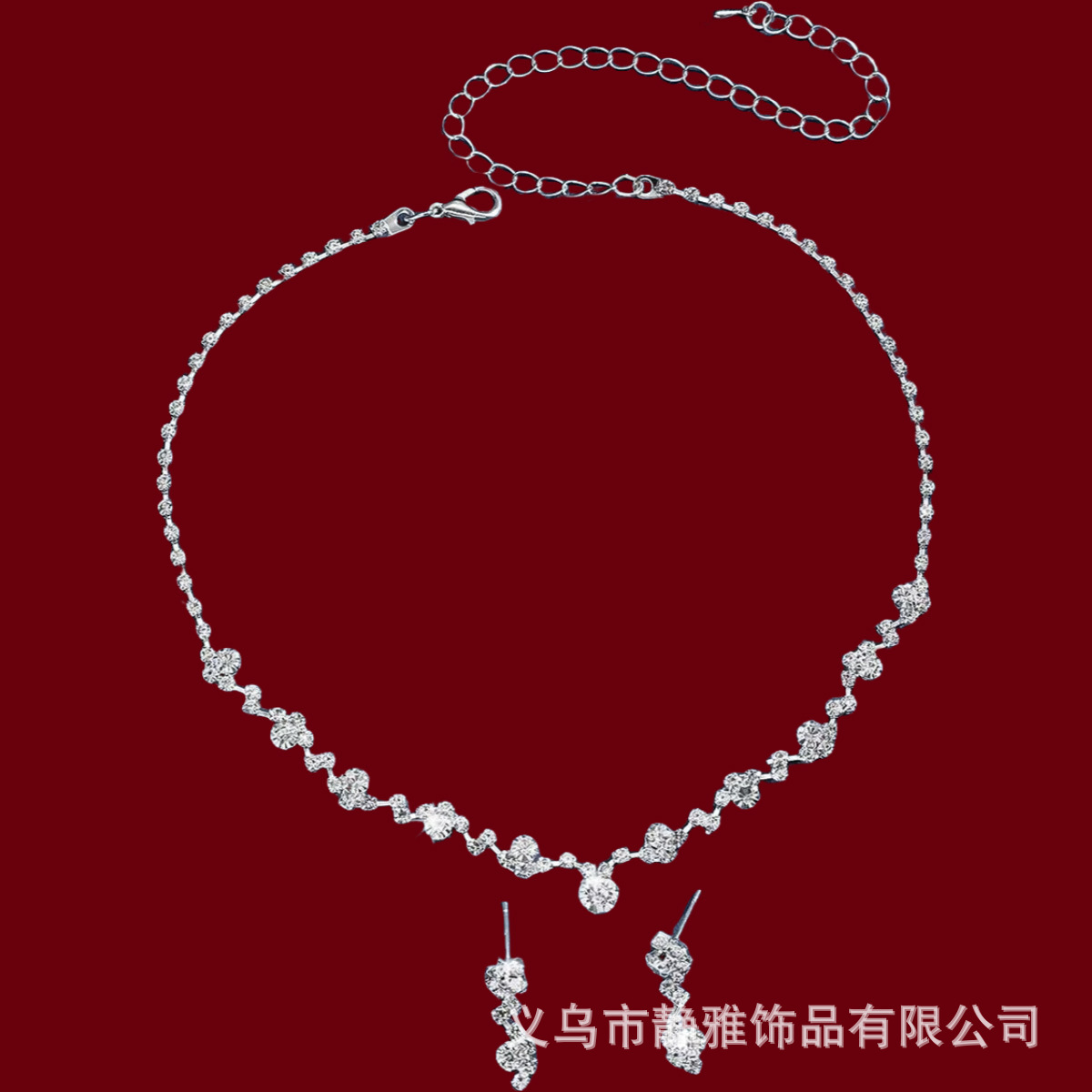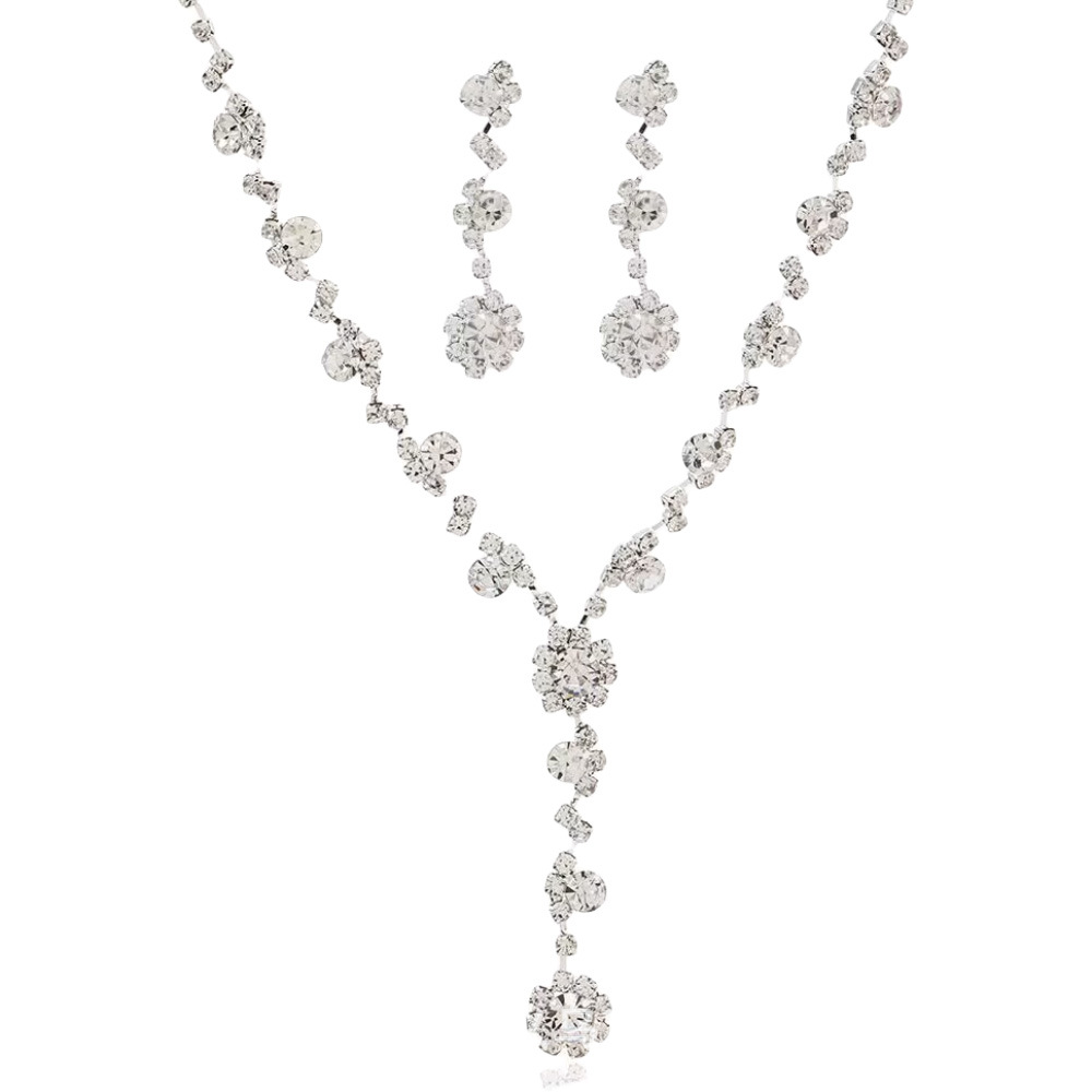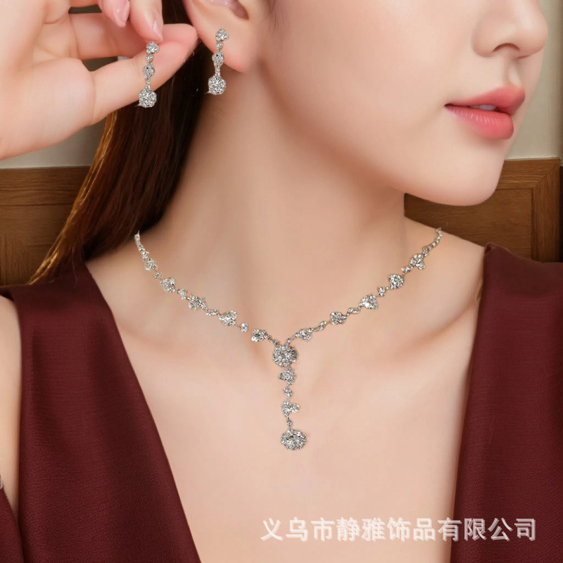 amazon flower rhinestone necklace and earrings suite fashion temperament new jewelry bride clavicle chain jewelry wholesale 中文版