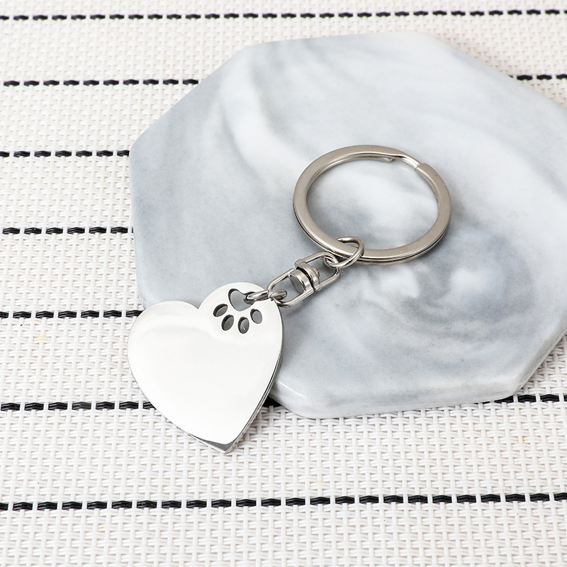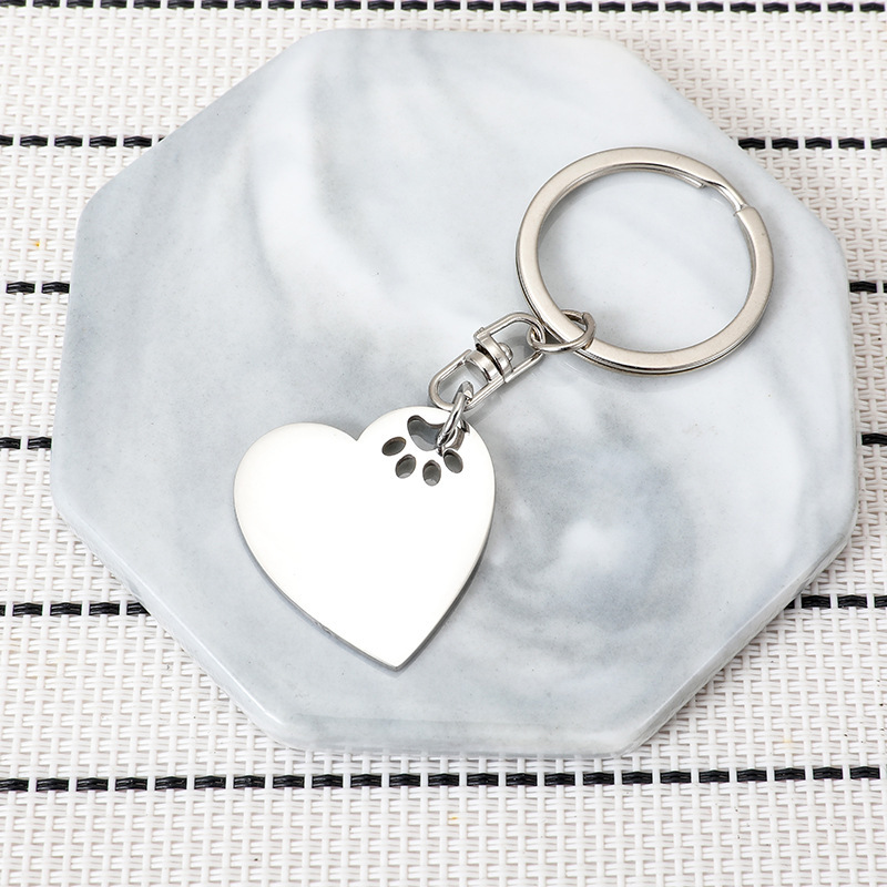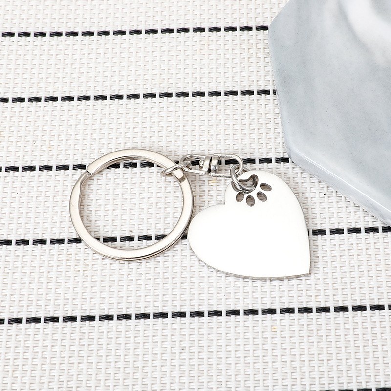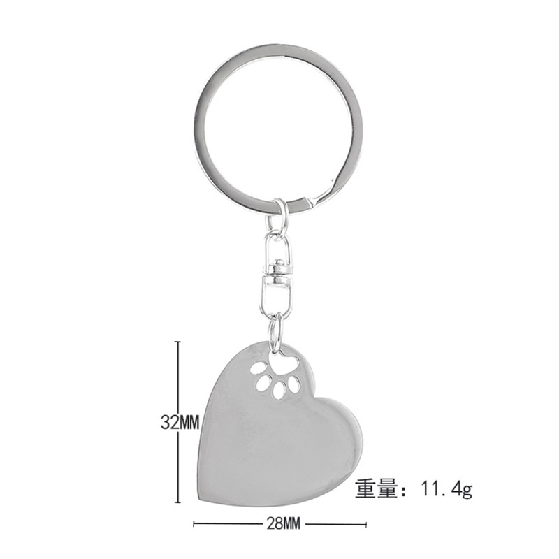 Cross-Border New Arrival Love Small Dog Paw Prints Stainless Steel Key Ring Pet Lover Gift Can Carve Writing DIY Pendant 中文版