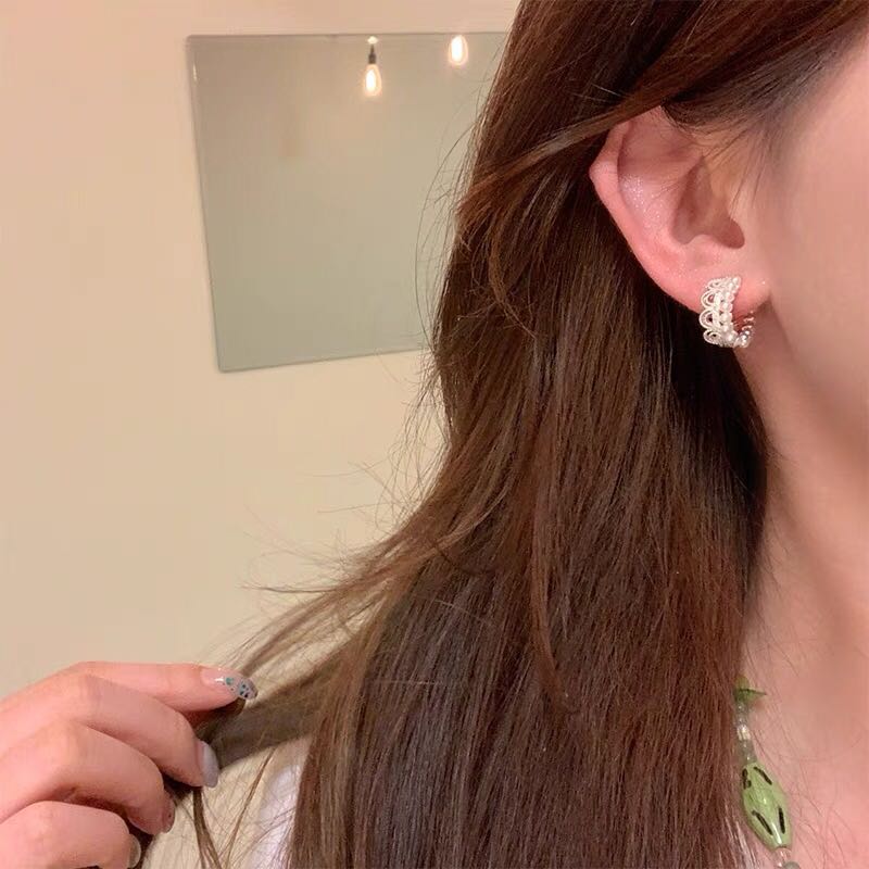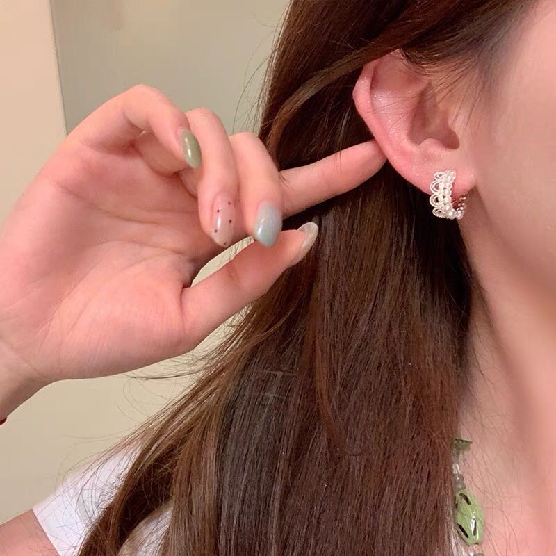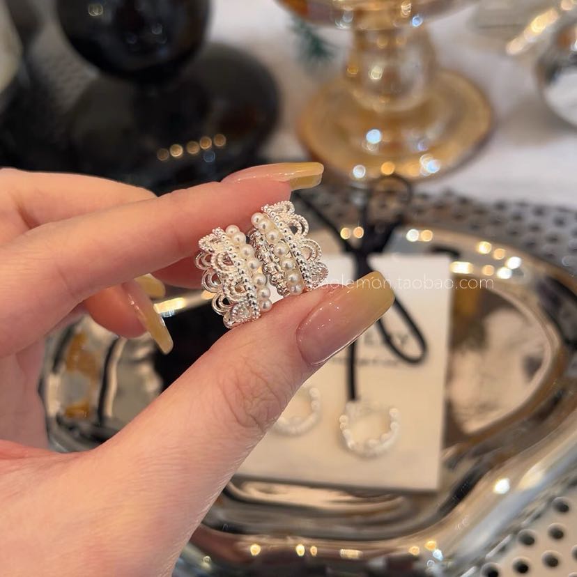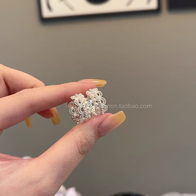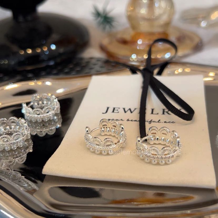 princess on the run silver simple lace ear clip women's light luxury earrings sweet style girlish style earrings 中文版