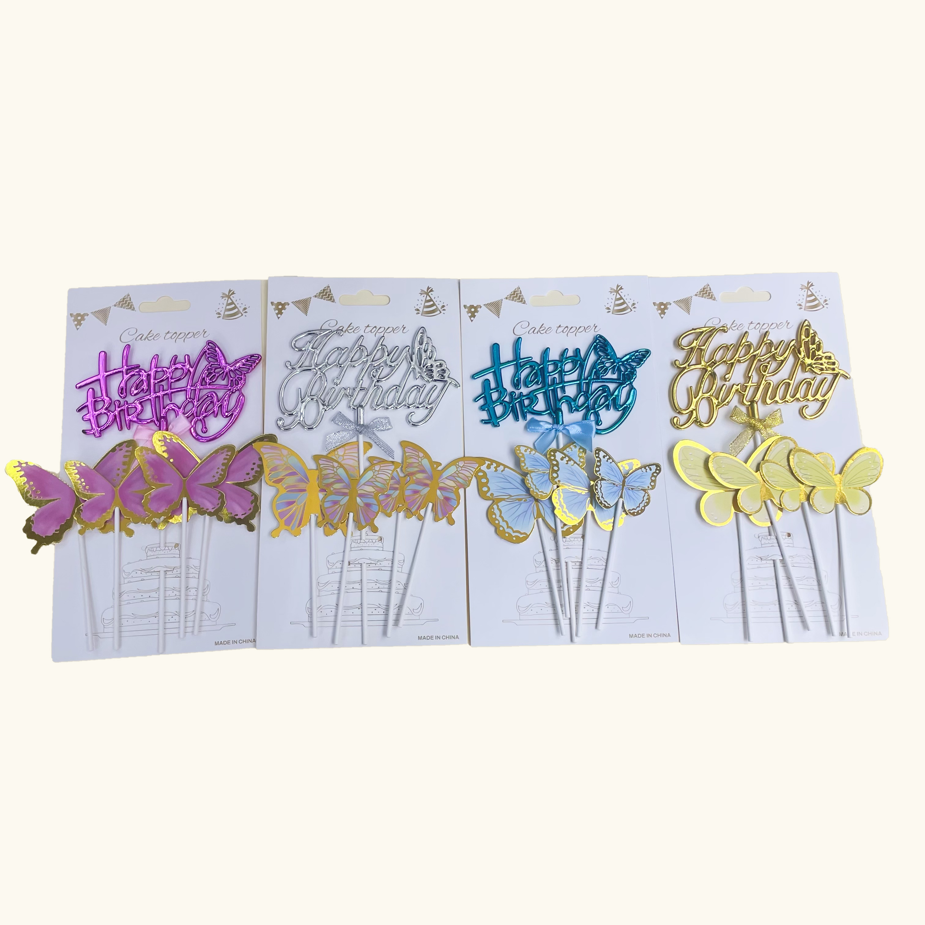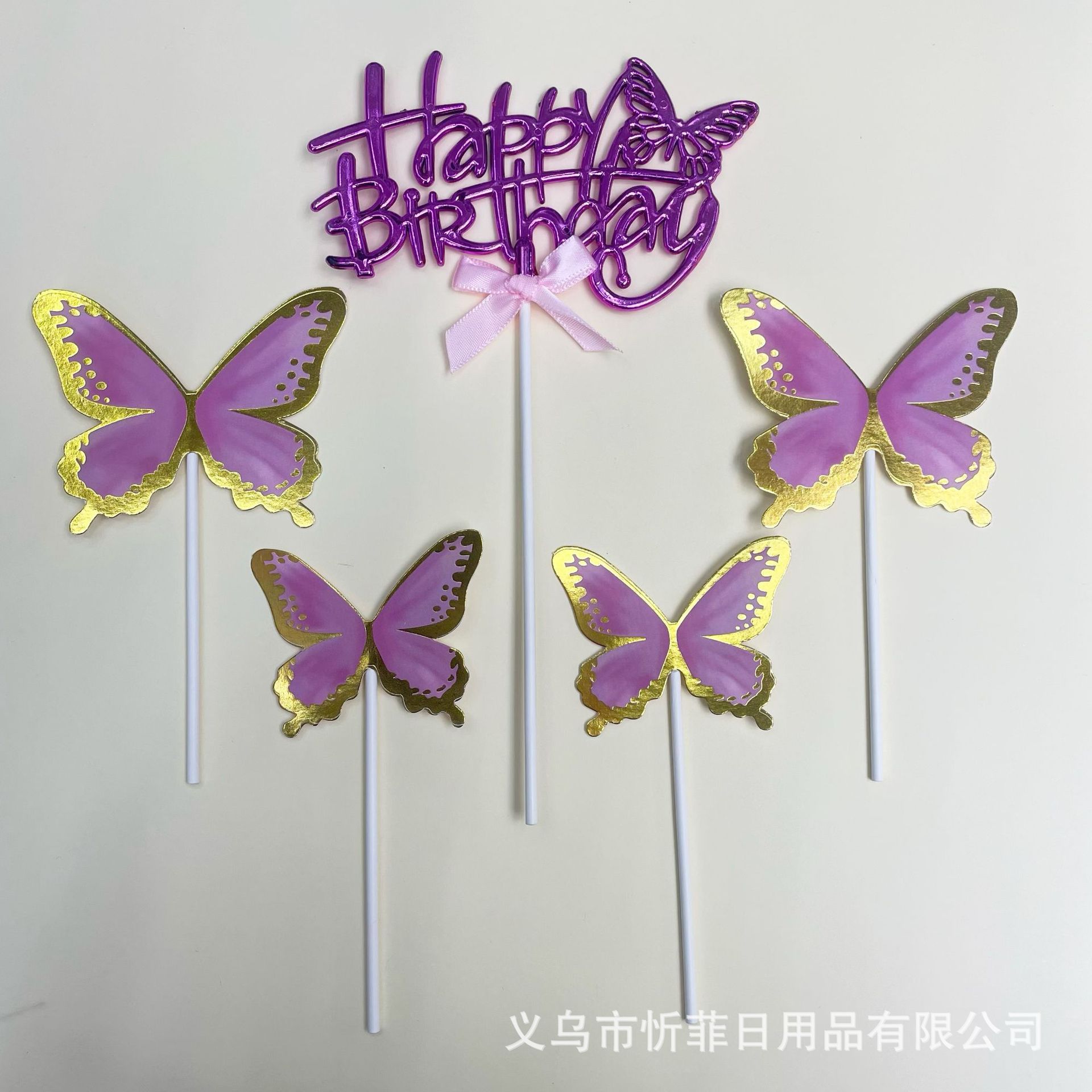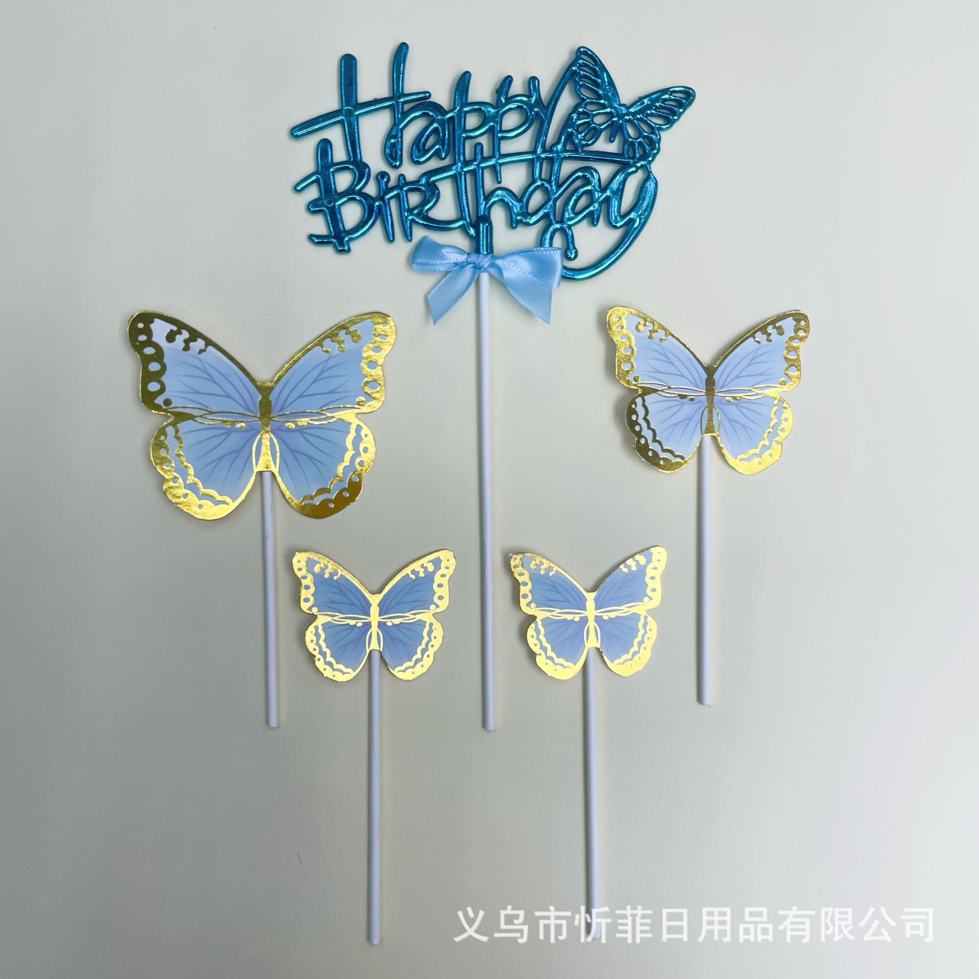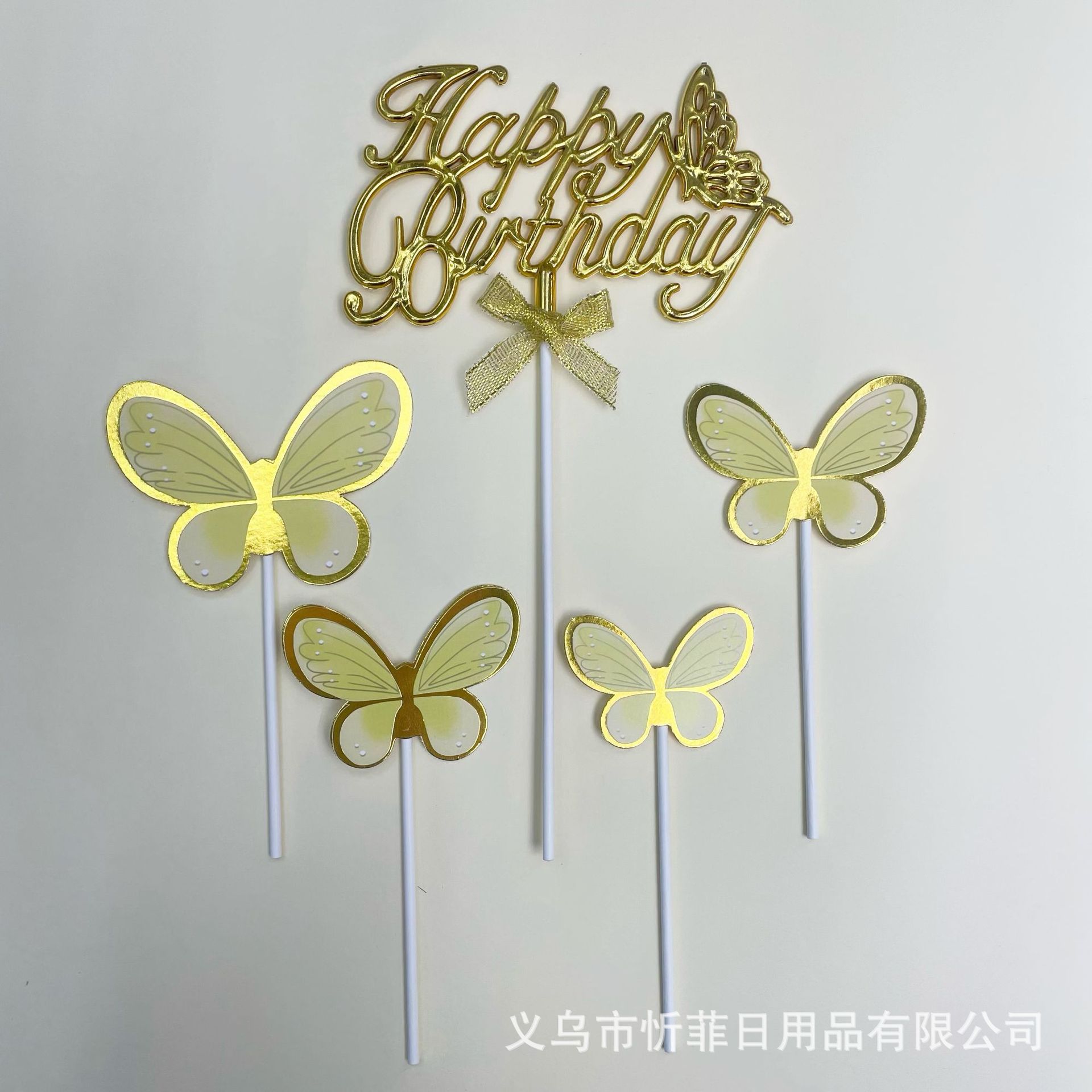 【Product Name】: 3D Butterfly English Cake Plug-in Set