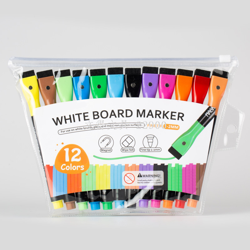 New Whiteboard Marker Water-Based Fine-Head Erasable Children's Painting Graffiti Pen with Magnetic Brush Printable Logo 中文版