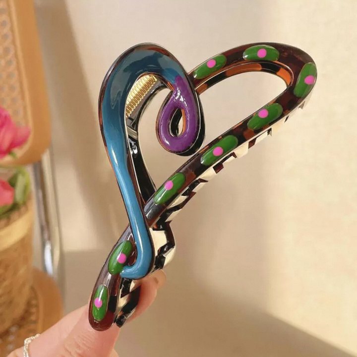 3# rainbow polka dot peach heart grip-8cm