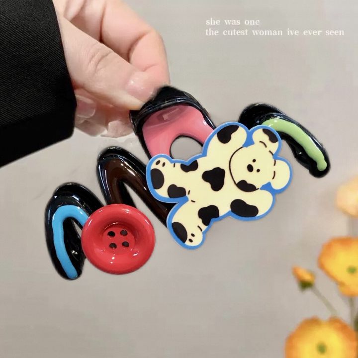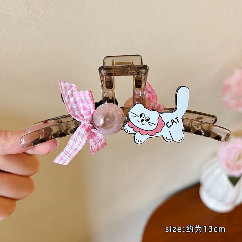 17# black pink polka dot bow claw clip-12cm