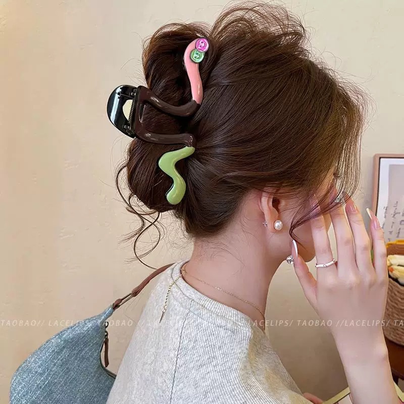 25# pink green smiley face mark drip glazed contrast color snake wave about 12.5cm