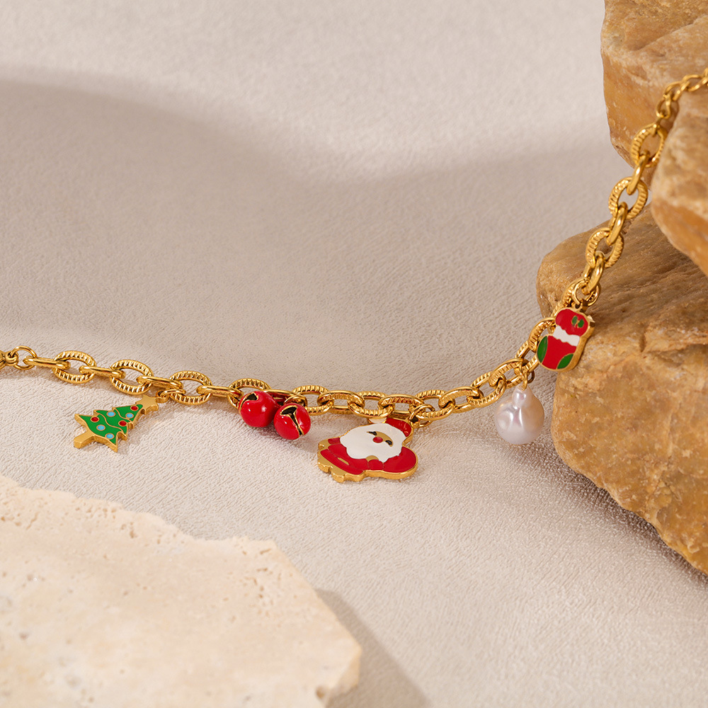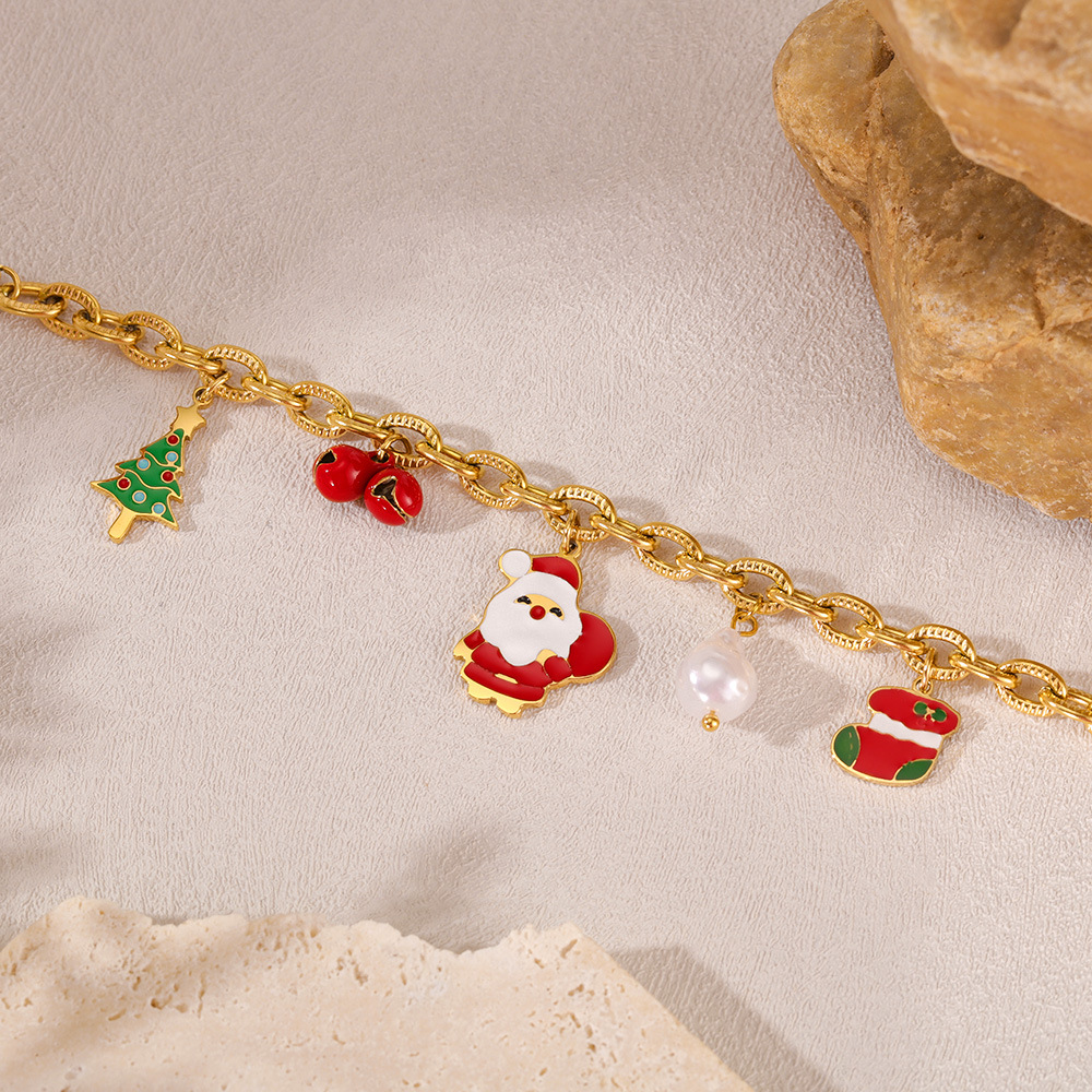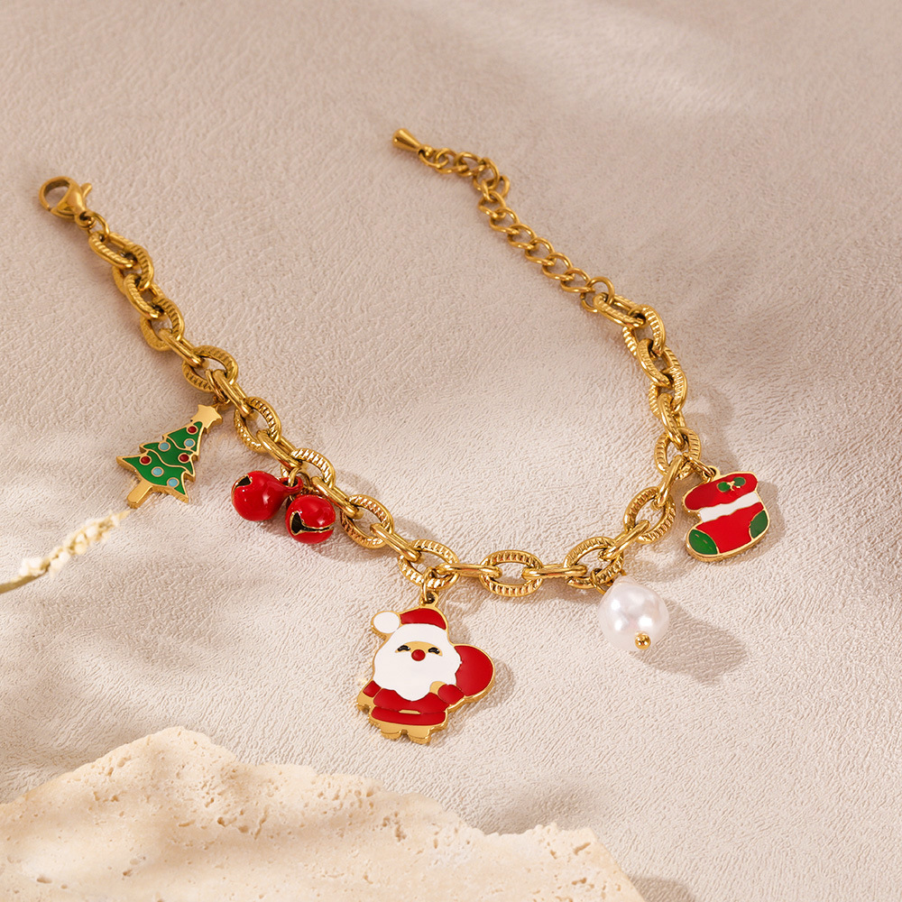 christmas niche personality santa claus titanium steel bracelet female bell christmas tree epoxy stainless steel jewelry 中文版