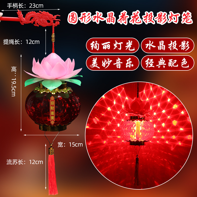 Large Projection Crystal Fortune Lantern (Music, Light, Projection Function): 14*13cm,