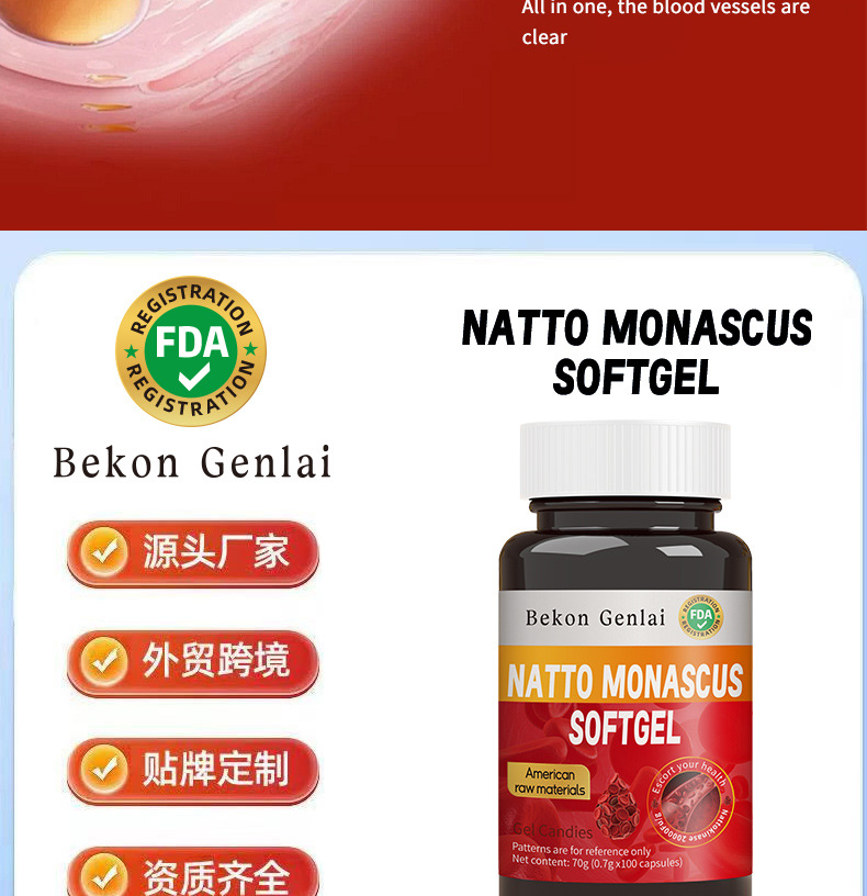 natto red yeast rice 70g/bottle (0.7*100 tablets)