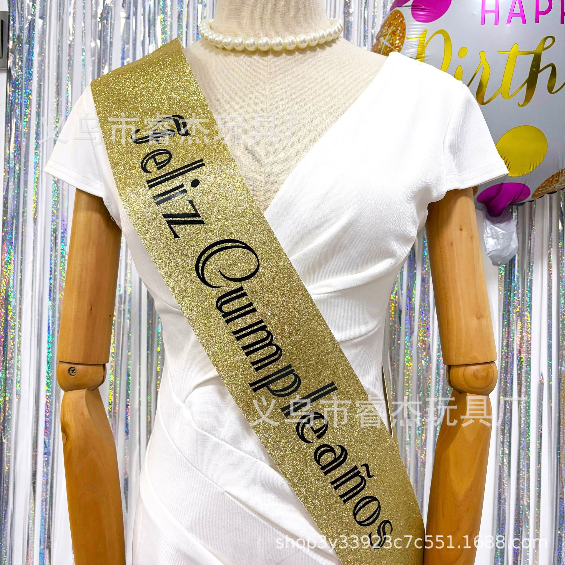 | Product Name | New Birthday Party Feliz Cumpleaños Spanish Birthday Shoulder Strap Gold Powder Sash |
